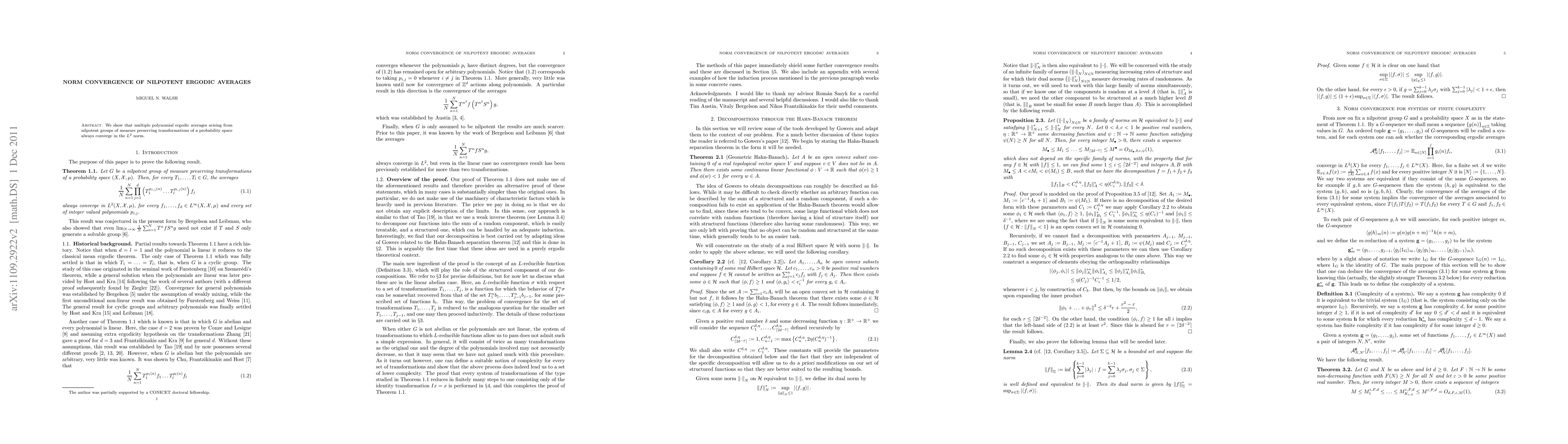 This research demonstrates that ergodic averages from nilpotent groups of measure-preserving transformations converge in the L^2 norm, establishing norm convergence for multiple polynomial ergodic averages.