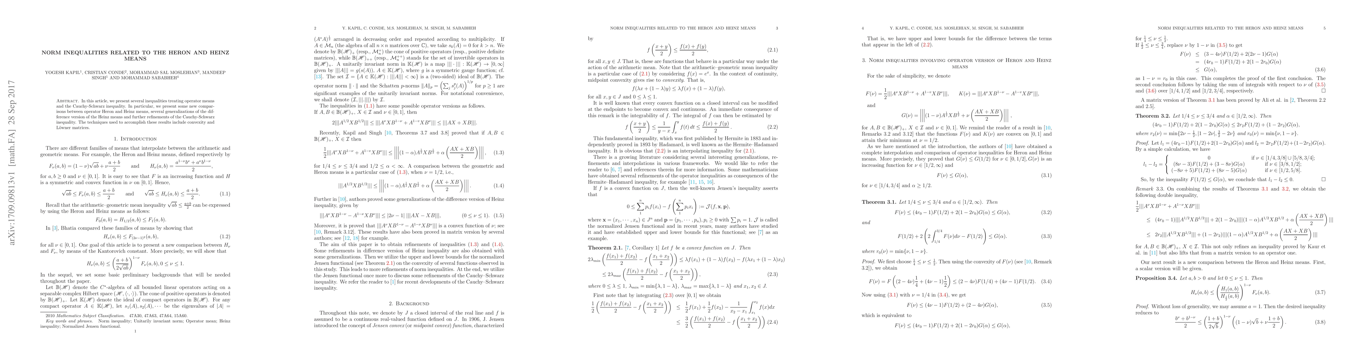 This paper introduces new inequalities comparing operator Heron and Heinz means, along with generalizations of Heinz means and refinements of the Cauchy-Schwarz inequality, utilizing convexity and Löwner matrices.