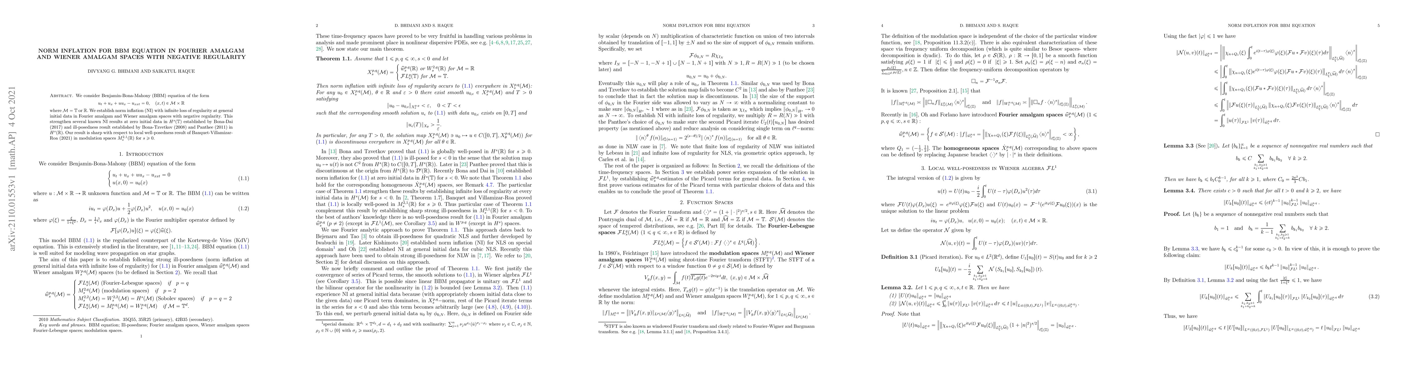 This paper establishes norm inflation for the Benjamin-Bona-Mahony (BBM) equation in Fourier and Wiener amalgam spaces with negative regularity, demonstrating infinite loss of regularity for general initial data. This strengthens previous norm inflation results for zero initial data.
