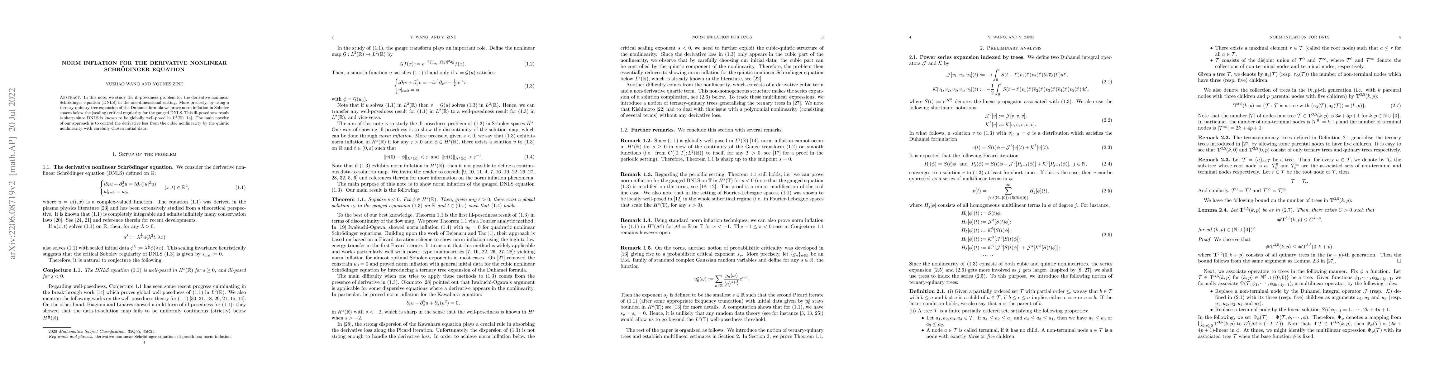 This paper investigates the ill-posedness of the derivative nonlinear Schrödinger equation (DNLS) in one dimension, proving norm inflation in Sobolev spaces below critical regularity using a ternary-quinary tree expansion. The approach controls derivative loss via the quintic nonlinearity, demonstrating a sharp ill-posedness result contrasting with DNLS's global well-posedness in $L^2(\mathbb{R})$.