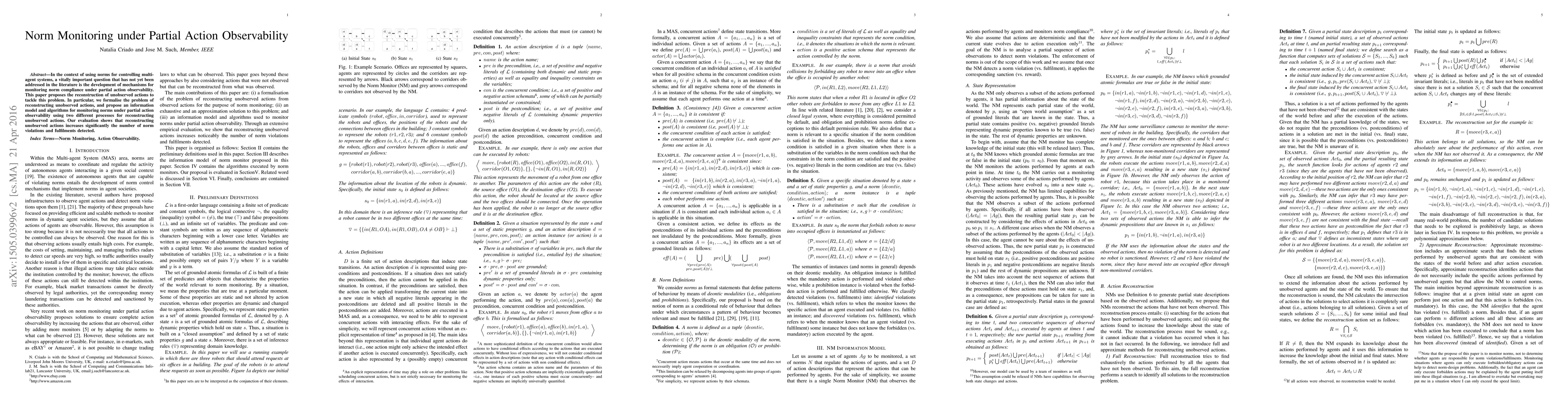 Researchers propose a method to reconstruct unobserved actions in multi-agent systems to monitor norm compliance under partial action observability. This approach increases the detection of both norm violations and fulfillments.