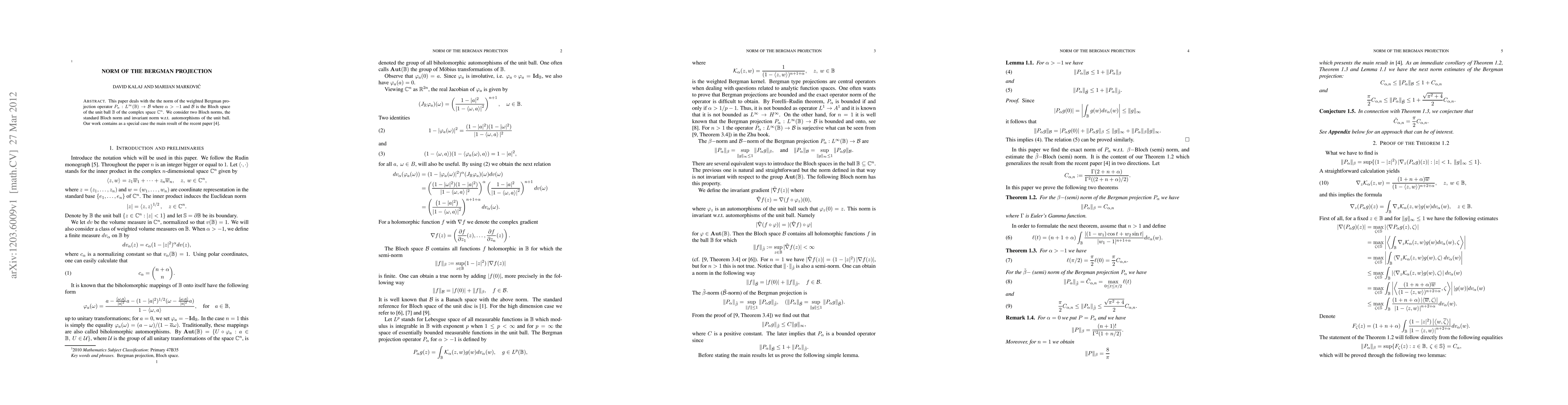 This paper deals with the the norm of the weighted Bergman projection operator $P_\alpha:L^\infty\to \mathcal{B}$ where $\alpha>-1$ and $\mathcal{B}$ is the Bloch space of the unit ball of the complex space $\mathbf{C}^n$. We consider two Bloch norms, the standard Bloch norm and invariant norm w.r.t. automorphisms of the unit ball. Our work contains as a special case the main result of the recent paper \cite{Perala}.
