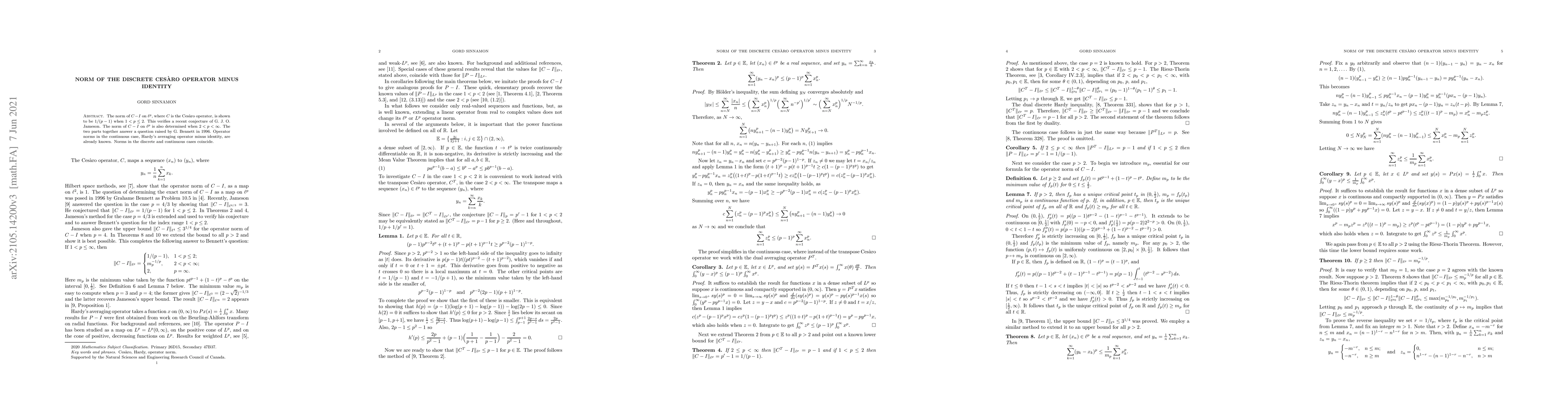 The norm of $C-I$ on $\ell^p$, where $C$ is the Ces\`aro operator, is shown to be $1/(p-1)$ when $1