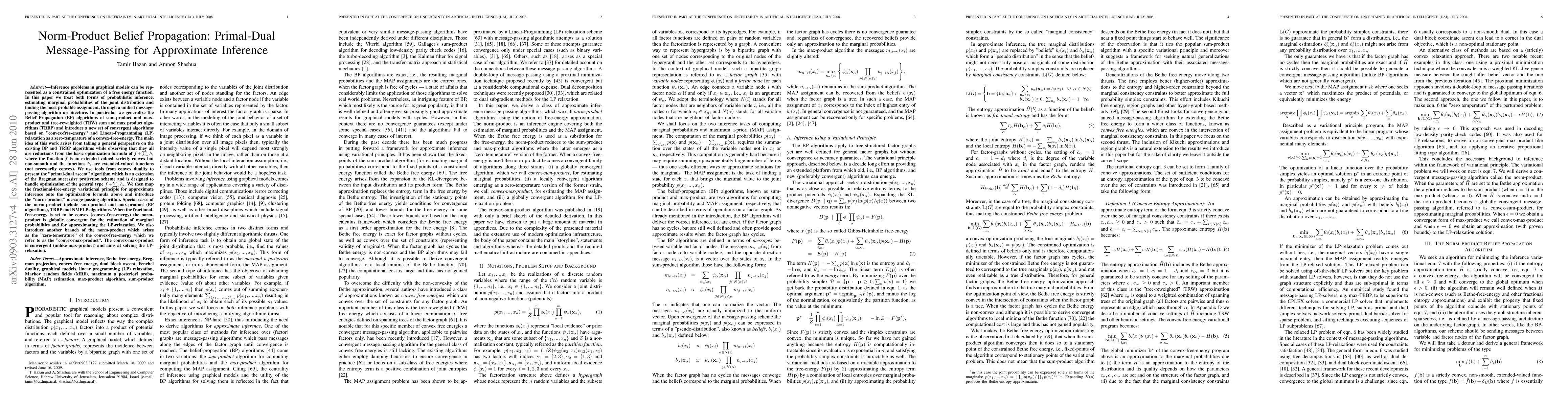 In this paper we treat both forms of probabilistic inference, estimating marginal probabilities of the joint distribution and finding the most probable assignment, through a unified message-passing algorithm architecture. We generalize the Belief Propagation (BP) algorithms of sum-product and max-product and tree-rewaighted (TRW) sum and max product algorithms (TRBP) and introduce a new set of convergent algorithms based on "convex-free-energy" and Linear-Programming (LP) relaxation as a zero-temprature of a convex-free-energy. The main idea of this work arises from taking a general perspective on the existing BP and TRBP algorithms while observing that they all are reductions from the basic optimization formula of $f + \sum_i h_i$ where the function $f$ is an extended-valued, strictly convex but non-smooth and the functions $h_i$ are extended-valued functions (not necessarily convex). We use tools from convex duality to present the "primal-dual ascent" algorithm which is an extension of the Bregman successive projection scheme and is designed to handle optimization of the general type $f + \sum_i h_i$. Mapping the fractional-free-energy variational principle to this framework introduces the "norm-product" message-passing. Special cases include sum-product and max-product (BP algorithms) and the TRBP algorithms. When the fractional-free-energy is set to be convex (convex-free-energy) the norm-product is globally convergent for estimating of marginal probabilities and for approximating the LP-relaxation. We also introduce another branch of the norm-product, the "convex-max-product". The convex-max-product is convergent (unlike max-product) and aims at solving the LP-relaxation.