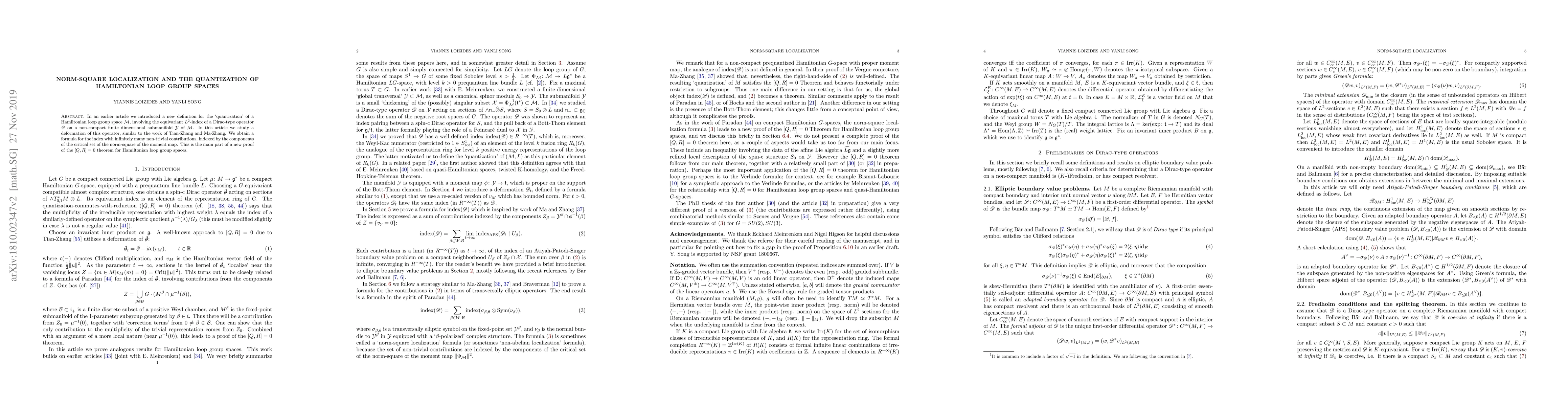 This paper explores the quantization of Hamiltonian loop group spaces through the equivariant $L^2$-index of a Dirac-type operator, introducing a Witten-type deformation. It provides a formula for the index with contributions from the critical set of the norm-square of the moment map, contributing to a new proof of the $[Q,R]=0$ theorem.