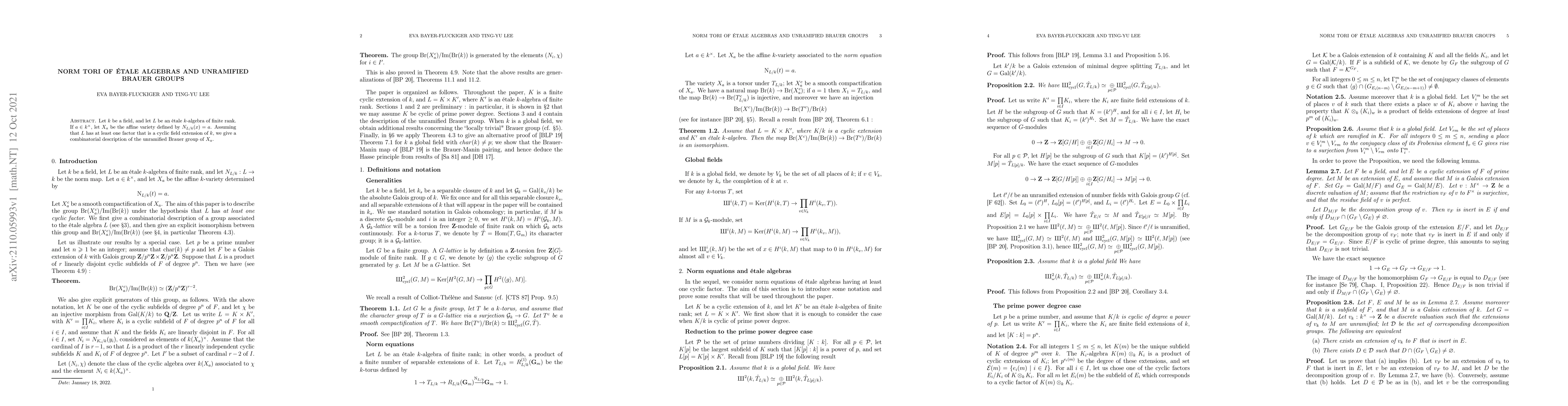 This paper explores the unramified Brauer group of affine varieties $X_a$ defined by norm equations in étale algebras $L$ over a field $k$, providing a combinatorial description when $L$ includes cyclic field extensions. The focus is on understanding these groups through their geometric and algebraic properties.