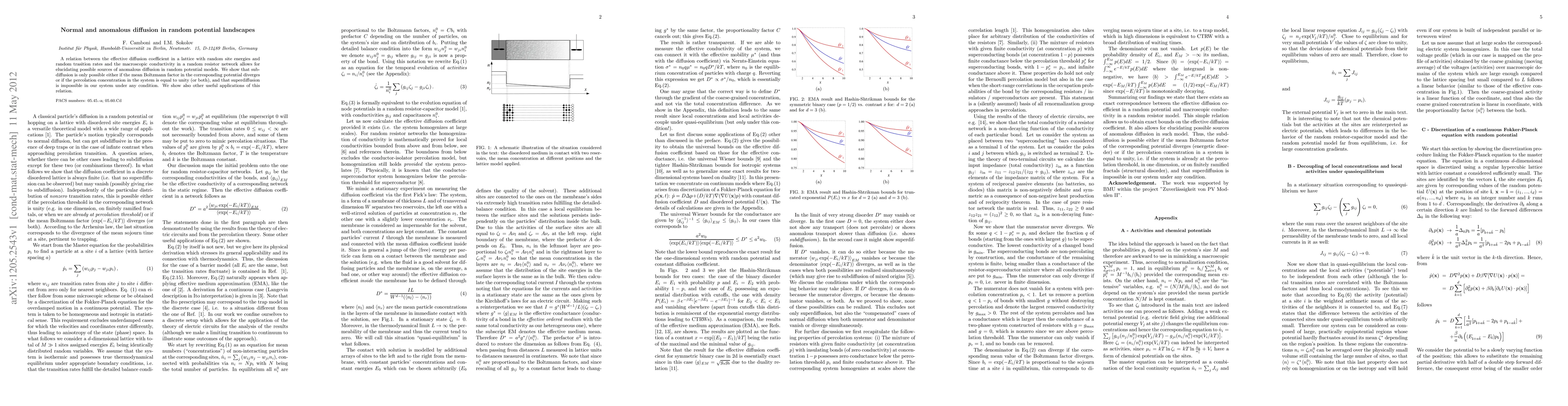 Researchers found that subdiffusion in random potential landscapes is only possible when specific conditions are met, including a divergent mean Boltzmann factor or a percolation concentration of 1. They also showed that superdiffusion is impossible under these conditions.