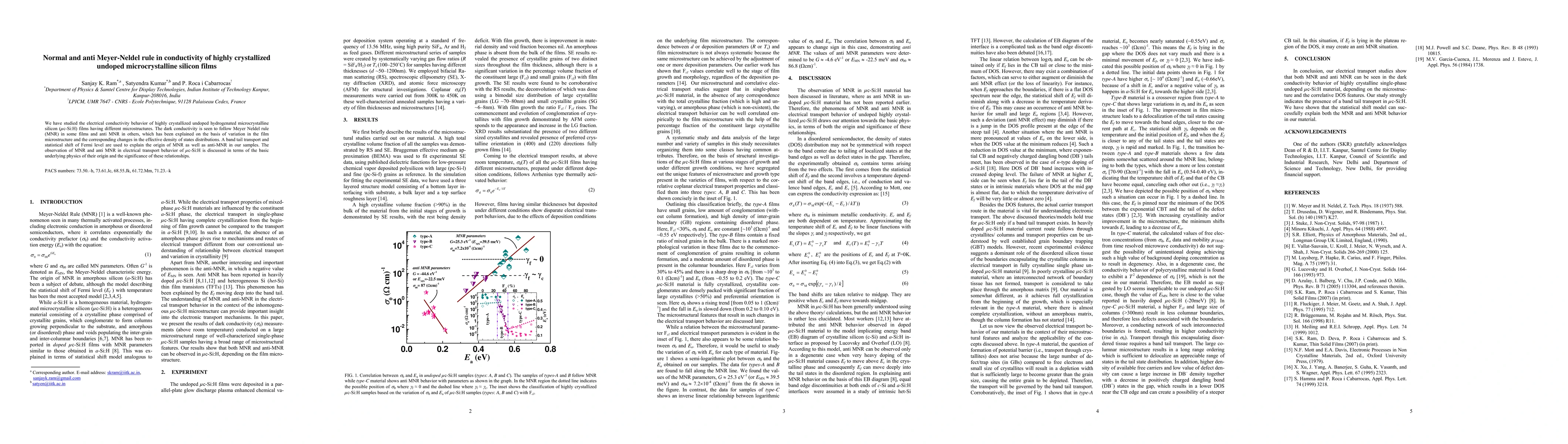 This study investigates the electrical conductivity of highly crystallized undoped microcrystalline silicon films, revealing that some exhibit the Meyer-Neldel rule (MNR) while others show an anti-MNR, which is attributed to variations in film microstructure and effective density of states. The findings are explained through band tail transport and statistical Fermi level shifts.