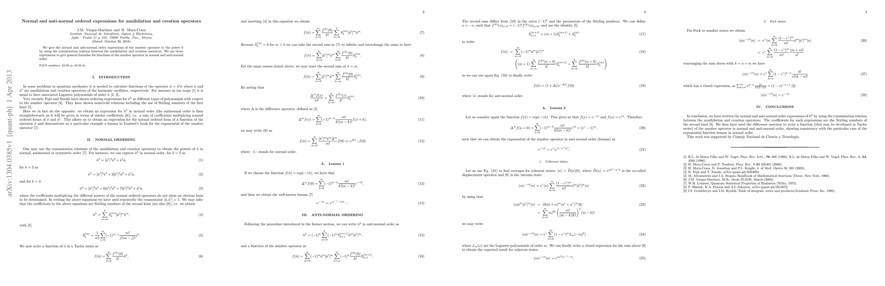 We give the normal and anti-normal order expressions of the number operator to the power $k$ by using the commutation relation between the annihilation and creation operators. We use those expressions to give general formulae for functions of the number operator in normal and anti-normal order.