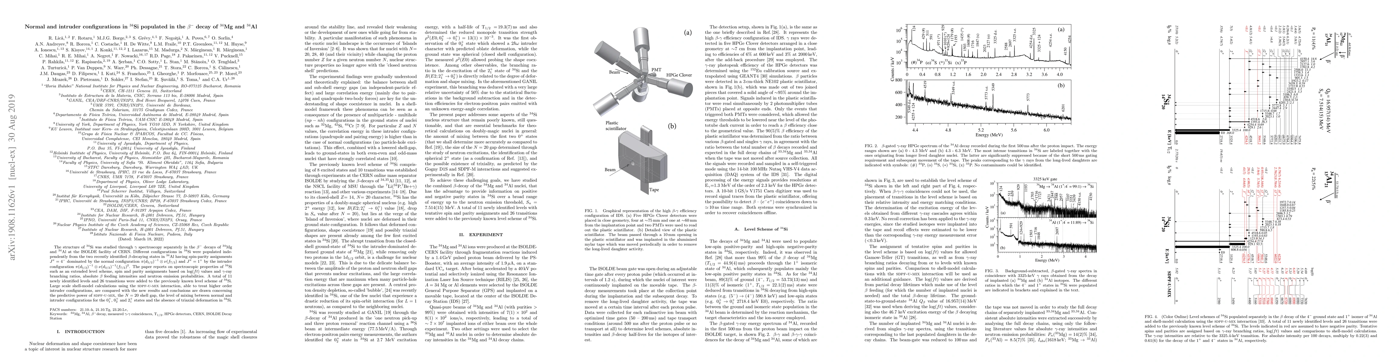 This study at CERN's ISOLDE facility used $gamma$ spectroscopy to analyze $^{34}$Si's structure, separately from $^{34}$Mg and $^{34}$Al's $eta^-$ decays. New level scheme additions, spin/parity assignments, and feeding intensities were reported. Shell-model calculations with sdpf-u-mix interaction validated these findings, offering insights into the $N=20$ shell gap, configuration mixing, and the absence of triaxial deformation in $^{34}$Si.