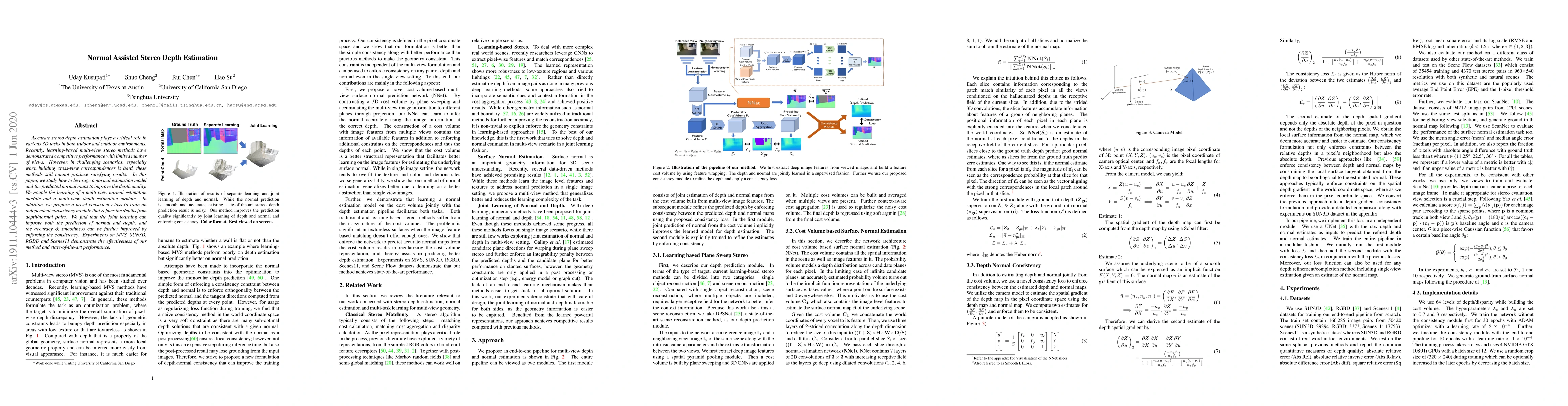 The paper proposes leveraging multi-view normal estimation and applying geometry constraints between surface normals and depth during training to enhance stereo depth estimation. It jointly learns to predict depth and normals based on a multi-view cost volume and refines depths from depth-normal pairs using an independent consistency module trained with a novel consistency loss.