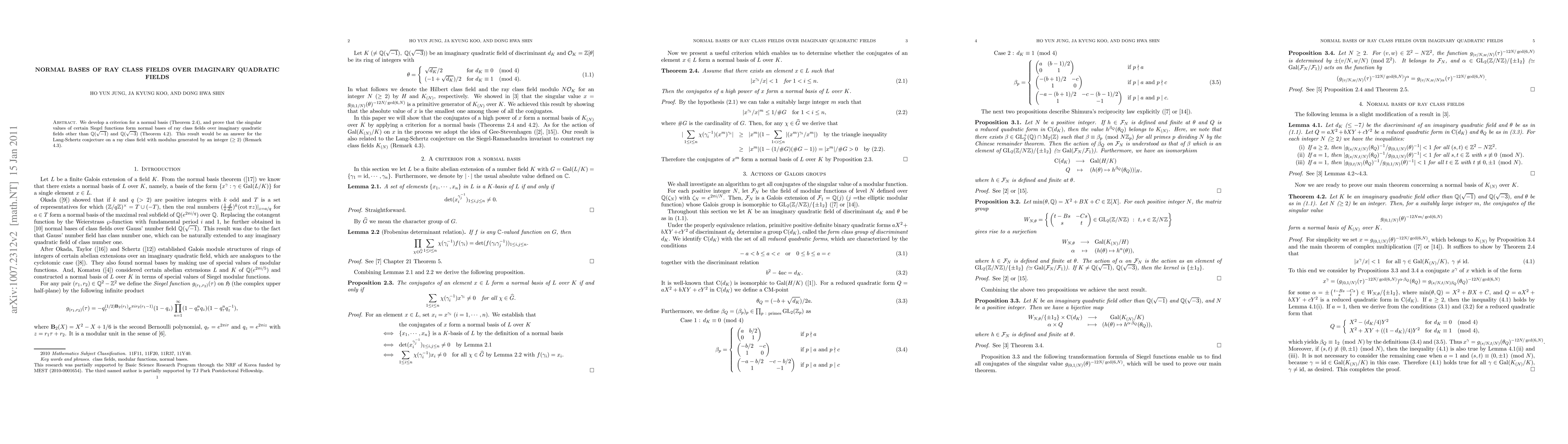 This paper establishes a criterion for normal bases in ray class fields over imaginary quadratic fields, demonstrating that specific Siegel function values generate such bases, thereby resolving the Lang-Schertz conjecture for fields with moduli generated by integers greater than or equal to 2.