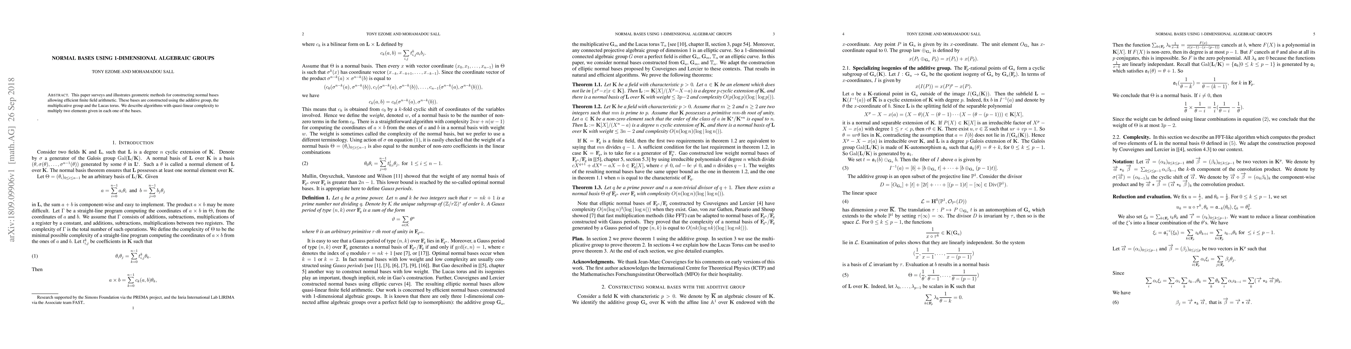 This paper surveys and illustrates geometric methods for constructing normal bases allowing efficient finite field arithmetic. These bases are constructed using the additive group, the multiplicative group and the Lucas torus. We describe algorithms with quasi-linear complexity to multiply two elements given in each one of the bases.