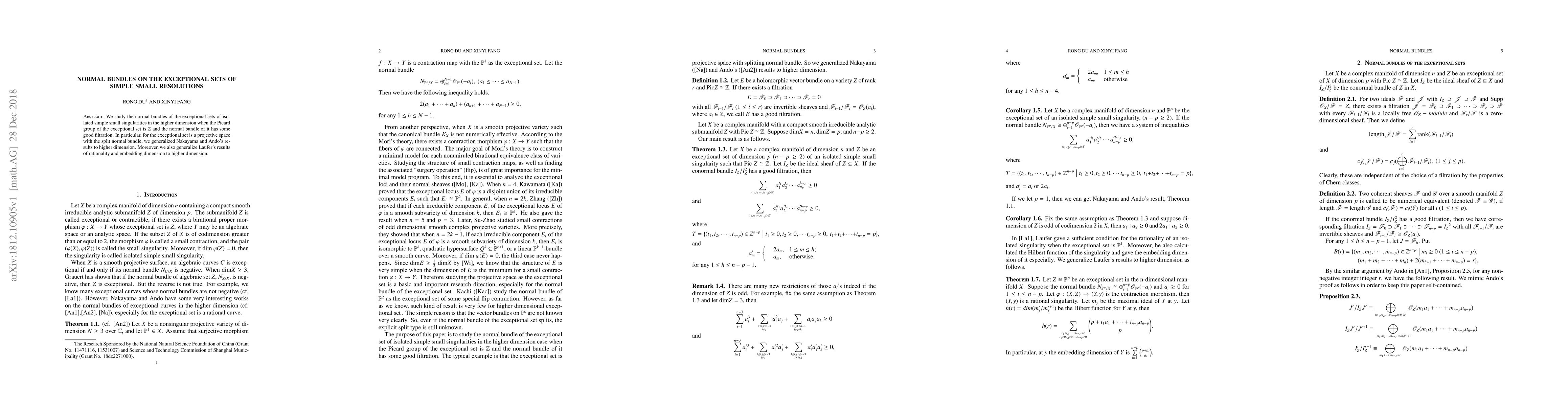 We study the normal bundles of the exceptional sets of isolated simple small singularities in the higher dimension when the Picard group of the exceptional set is $\mathbb{Z}$ and the normal bundle of it has some good filtration. In particular, for the exceptional set is a projective space with the split normal bundle, we generalized Nakayama and Ando's results to higher dimension. Moreover, we also generalize Laufer's results of rationality and embedding dimension to higher dimension.