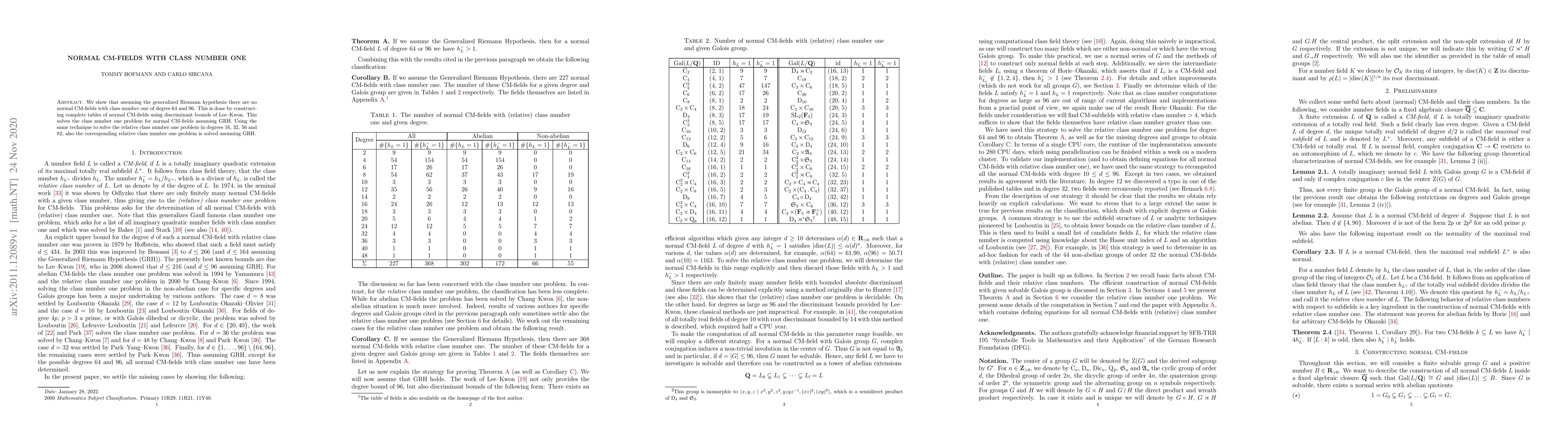 We show that assuming the generalized Riemann hypothesis there are no normal CM-fields with class number one of degree 64 and 96. This is done by constructing complete tables of normal CM-fields using discriminant bounds of Lee--Kwon. This solves the class number one problem for normal CM-fields assuming GRH. Using the same technique to solve the relative class number one problem in degrees 16, 32, 56 and 82, also the corresponding relative class number one problem is solved assuming GRH.
