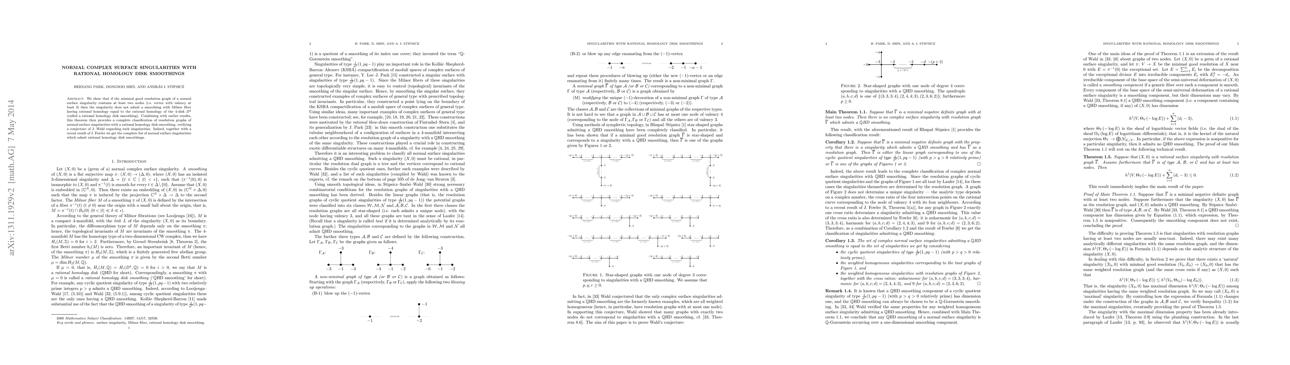 In this paper we show that if the minimal good resolution graph of a normal surface singularity contains at least two nodes (i.e. vertex with valency at least 3) then the singularity does not admit a smoothing with Milnor fiber having rational homology equal to the rational homology of the 4-disk $D^4$ (called a rational homology disk smoothing). Combining with earlier results, this theorem then provides a complete classification of resolution graphs of normal surface singularities with a rational homology disk smoothing, verifying a conjecture of J. Wahl regarding such singularities. Indeed, together with a recent result of J. Fowler we get the complete list of normal surface singularities which admit rational homology disk smoothings.