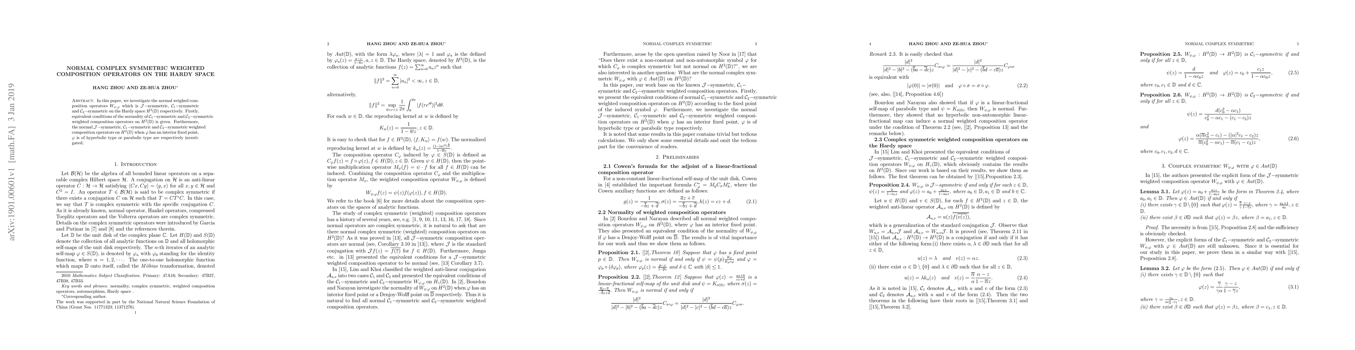 In this paper, we investigate the normal weighed composition operators $W_{\psi,\varphi}$ which is $\mathcal{J}-$symmetric, $\mathcal{C}_1-$symmetric and $\mathcal{C}_2-$symmetric on the Hardy space $H^2(\mathbb{D})$ respectively. Firstly, equivalent conditions of the normality of $\mathcal{C}_1-$symmetric and $\mathcal{C}_2-$symmetric weighted composition operators on $H^2(\mathbb{D})$ is given. Furthermore, the normal $\mathcal{J}-$symmetric, $\mathcal{C}_1-$symmetric and $\mathcal{C}_2-$symmetric weighted composition operators on $H^2(\mathbb{D})$ when $\varphi$ has an interior fixed point, $\varphi$ is of hyperbolic type or parabolic type are respectively investigated.