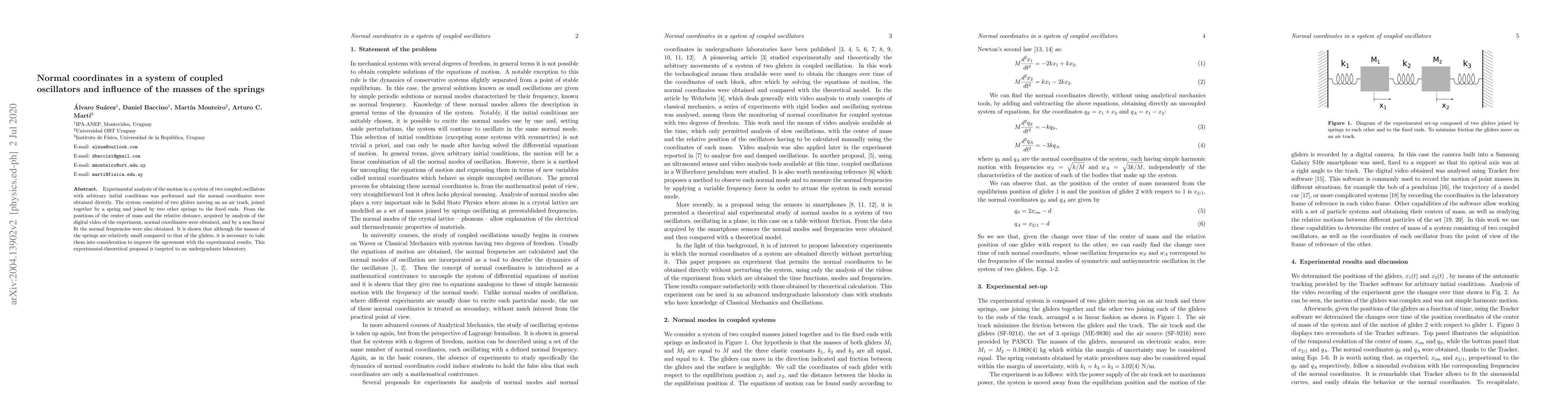 This paper experimentally analyzes a system of two coupled oscillators on an air track, deriving normal coordinates and frequencies from video analysis. It highlights the importance of considering the small but non-negligible masses of the connecting springs for accurate results, suitable for an undergraduate lab setting.