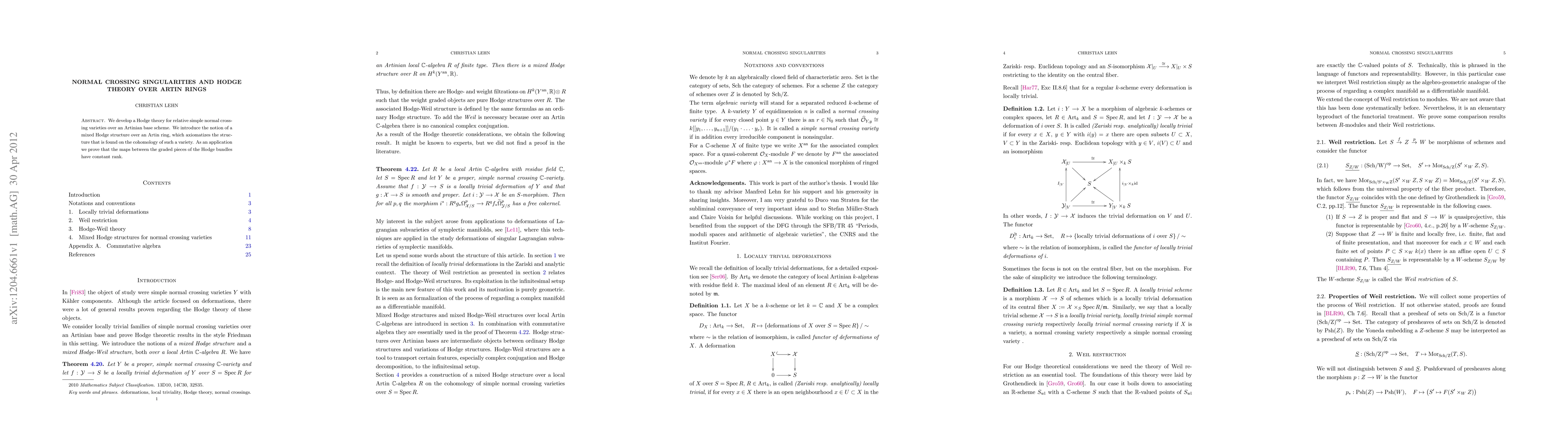This paper develops a Hodge theory for relative simple normal crossing varieties over Artin rings, introducing mixed Hodge structures to axiomatize the cohomology of such varieties. The authors prove that the rank of maps between the graded pieces of the Hodge bundles remains constant.