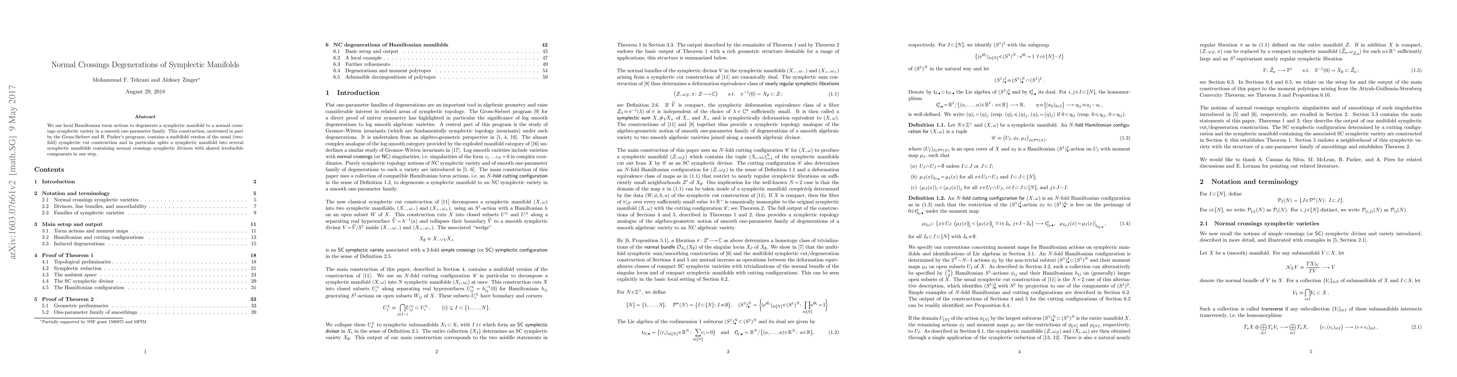 We use local Hamiltonian torus actions to degenerate a symplectic manifold to a normal crossings symplectic variety in a smooth one-parameter family. This construction, motivated in part by the Gross-Siebert and B. Parker's programs, contains a multifold version of the usual (two-fold) symplectic cut construction and in particular splits a symplectic manifold into several symplectic manifolds containing normal crossings symplectic divisors with shared irreducible components in one step.