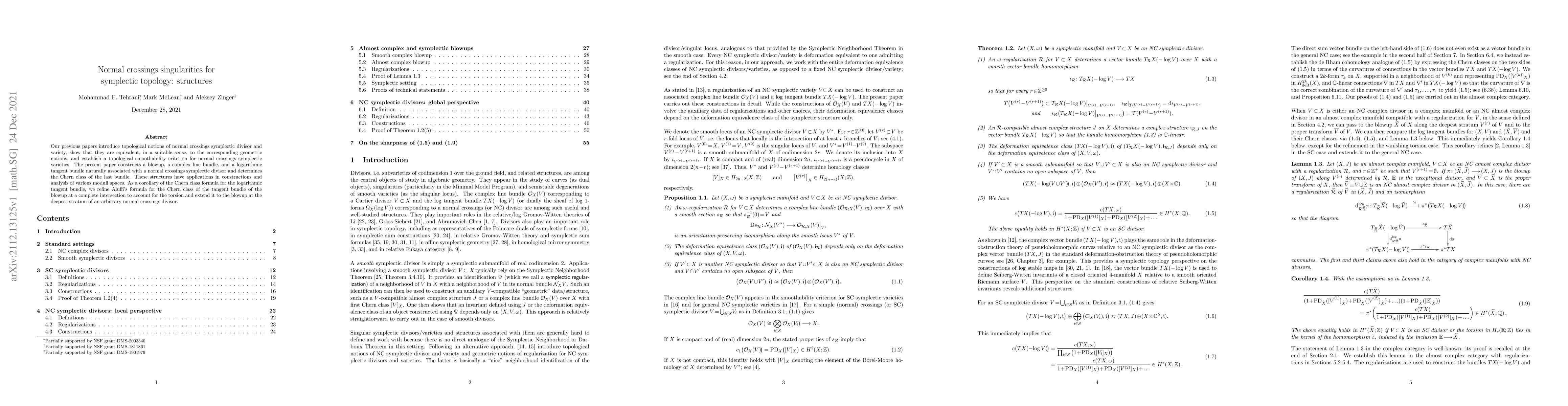 This paper builds on previous work to construct significant topological structures associated with normal crossings symplectic divisors, including a blowup, a complex line bundle, and a logarithmic tangent bundle. It determines the Chern class of the logarithmic tangent bundle and refines Aluffi's formula for the Chern class of blowups at complete intersections, extending it to handle torsion and more complex divisors.
