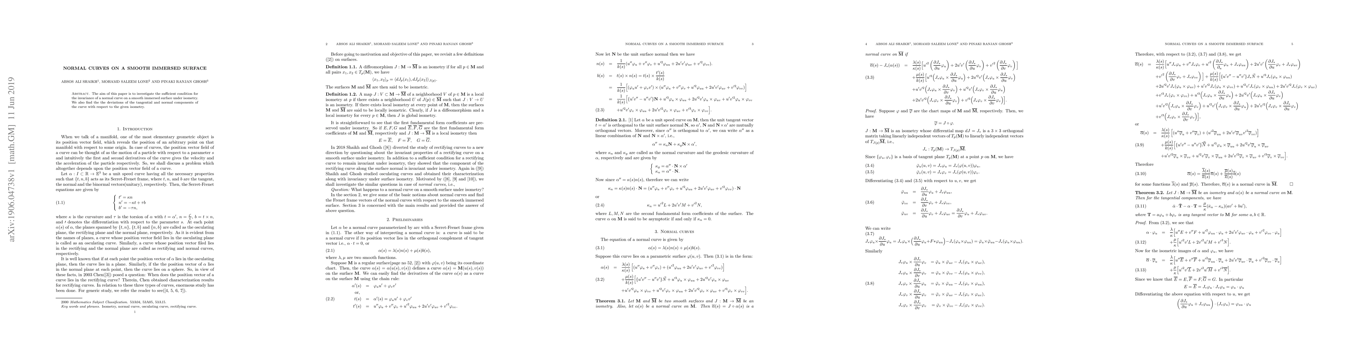 This paper explores the conditions ensuring that normal curves on a smooth immersed surface remain invariant under isometry and quantifies the deviations in tangential and normal components relative to the given isometry.