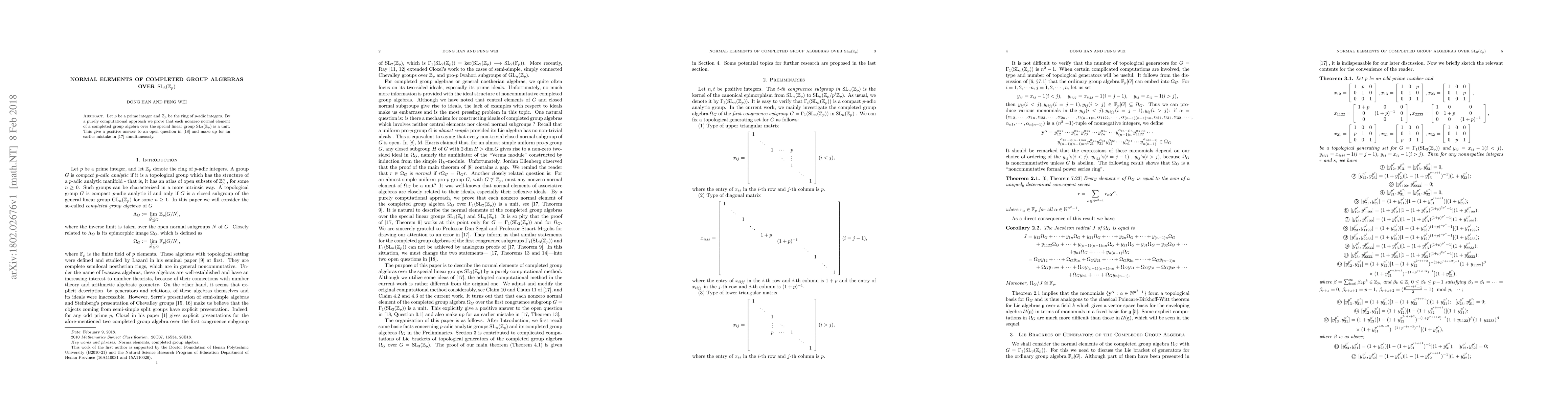 Let $p$ be a prime integer and $\mathbb{Z}_p$ be the ring of $p$-adic integers. By a purely computational approach we prove that each nonzero normal element of a completed group algebra over the special linear group ${\rm SL}_3(\mathbb{Z}_p)$ is a unit. This give a positive answer to an open question in \cite{WeiBian2} and make up for an earlier mistake in \cite{WeiBian1} simultaneously.