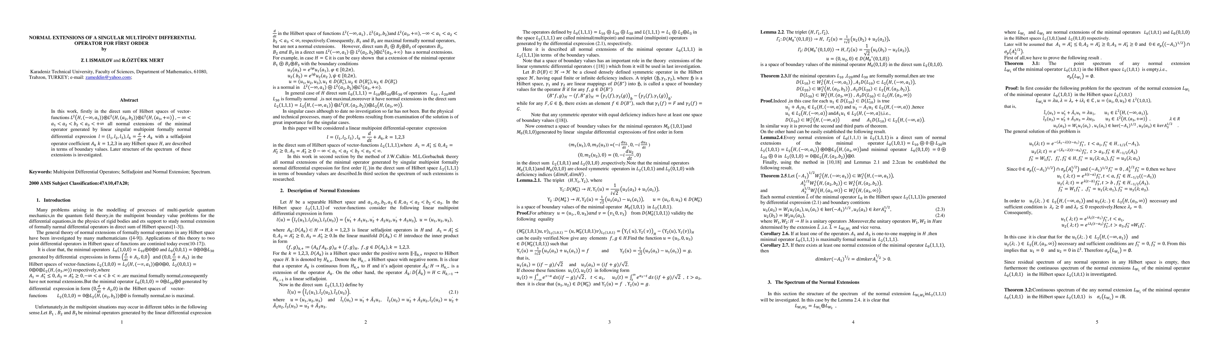 This paper describes all normal extensions of a singular multipoint differential operator in direct sum Hilbert spaces, expressing them in terms of boundary values. It further investigates the spectral structure of these extensions.