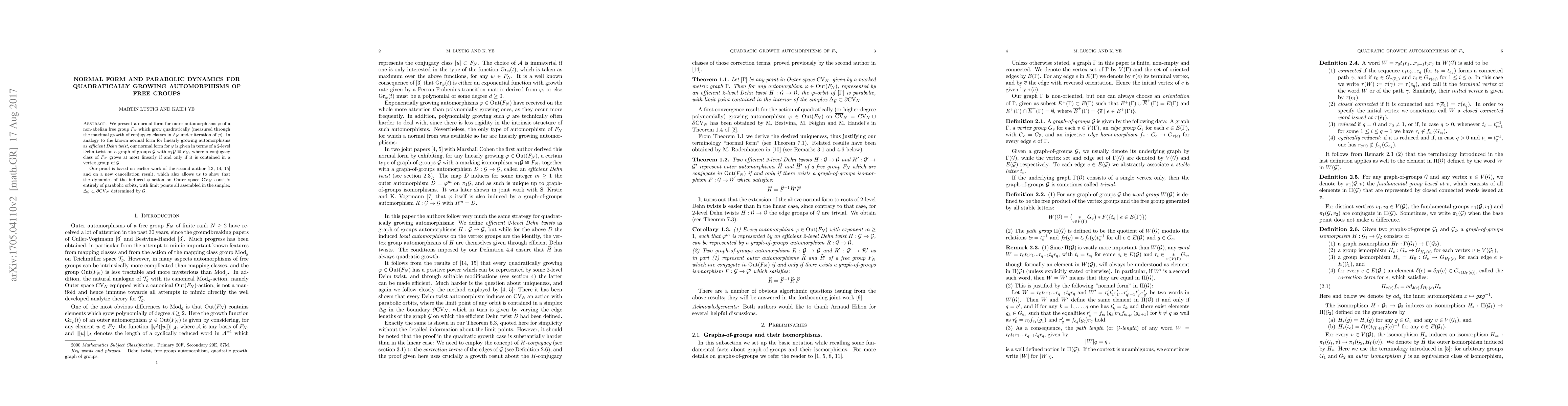 We present a normal form for outer automorphisms $\phi$ of a non-abelian free group $F_N$ which grow quadratically (measured through the maximal growth of conjugacy classes in $F_N$ under iteration of $\phi$). In analogy to the known normal form for linearly growing automorphisms as efficient Dehn twist, our normal form for $\phi$ is given in terms of a 2-level Dehn twist on a graph-of-groups $\cal{G}$ with $\pi_1 {\cal{G}} \cong F_N$, where a conjugacy class of $F_N$ grows at most linearly if and only if it is contained in a vertex group of $\cal{G}$. Our proof is based on earlier work of the second author and on a new cancellation result, which also allows us to show that the dynamics of the induced $\phi$-action on Outer space $CV_N$ consists entirely of parabolic orbits, with limit points all assembled in the simplex $\Delta_{\cal{G}} \subset \partial CV_N$ determined by $\cal{G}$.