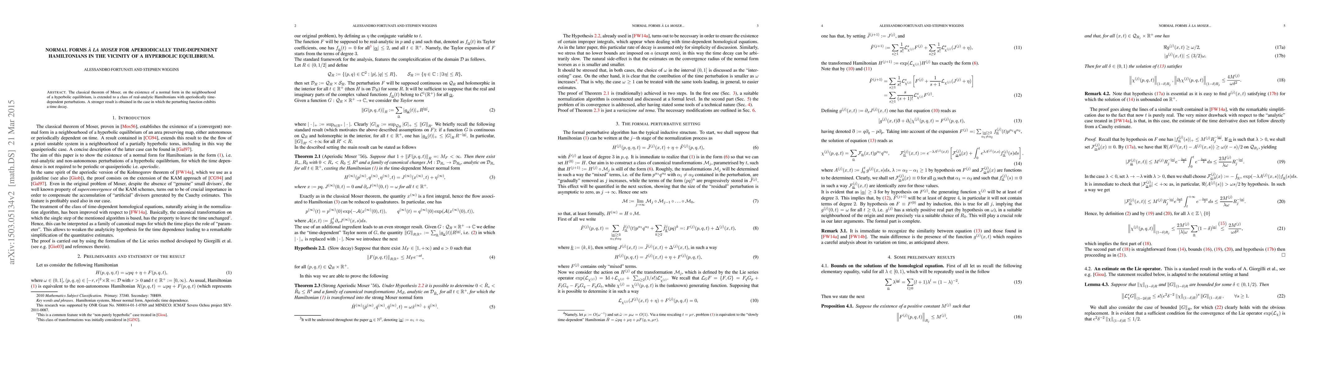 This paper extends Moser's classical theorem on normal forms to real-analytic Hamiltonians with aperiodically time-dependent perturbations near a hyperbolic equilibrium. It achieves a stronger result when the perturbing function exhibits time decay.