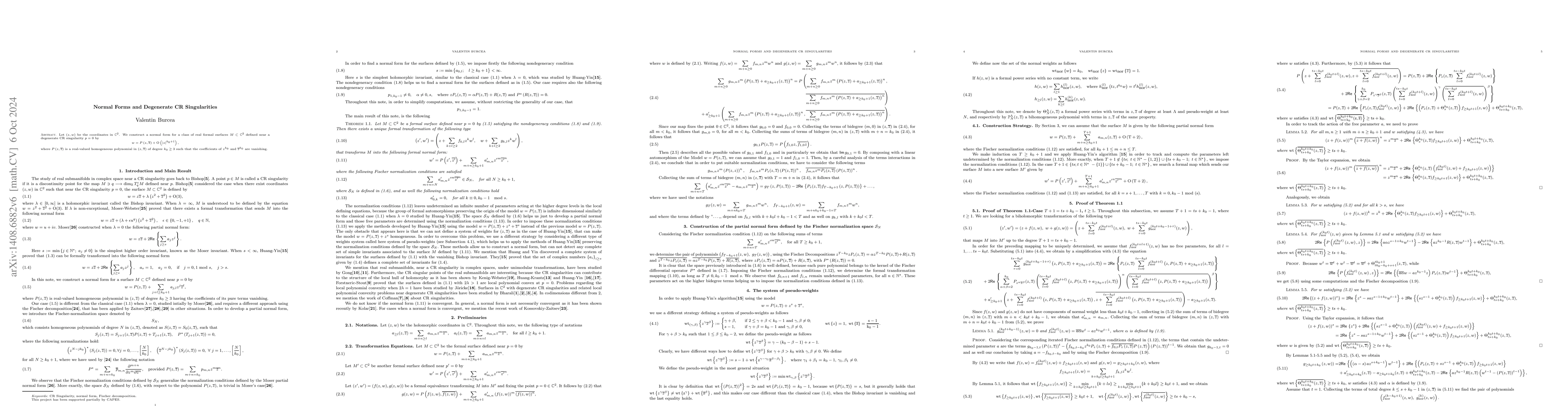 This work is novel because it provides a new understanding of the role of CR singularities in algebraic geometry and differential geometry, and presents a novel transformation that can be used to construct normal forms for real hypersurfaces.