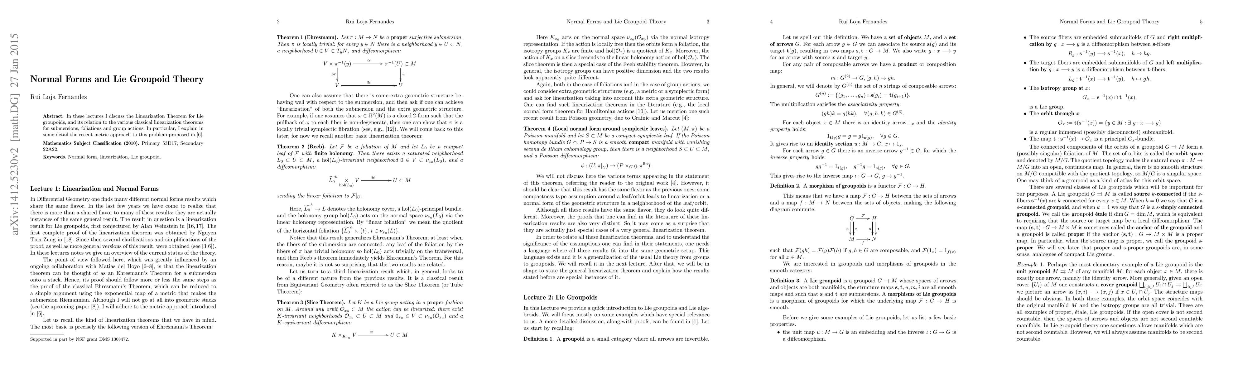 In these lectures notes I discuss the Linearization Theorem for Lie groupoids, and its relation to the various classical linearization theorems for submersions, foliations and group actions. In particular, I explain in some detail the recent metric approach to this problem.