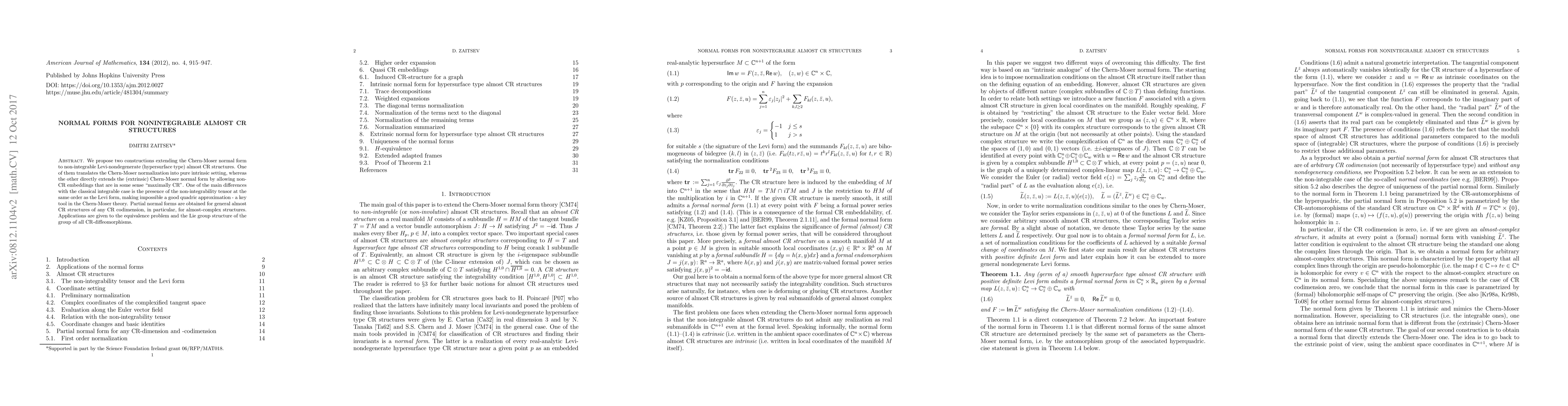 This paper proposes two constructions to extend the Chern-Moser normal form for non-integrable Levi-nondegenerate almost CR structures, addressing the challenge posed by the non-integrability tensor. Applications include insights into the equivalence problem and the Lie group structure of CR-diffeomorphisms.