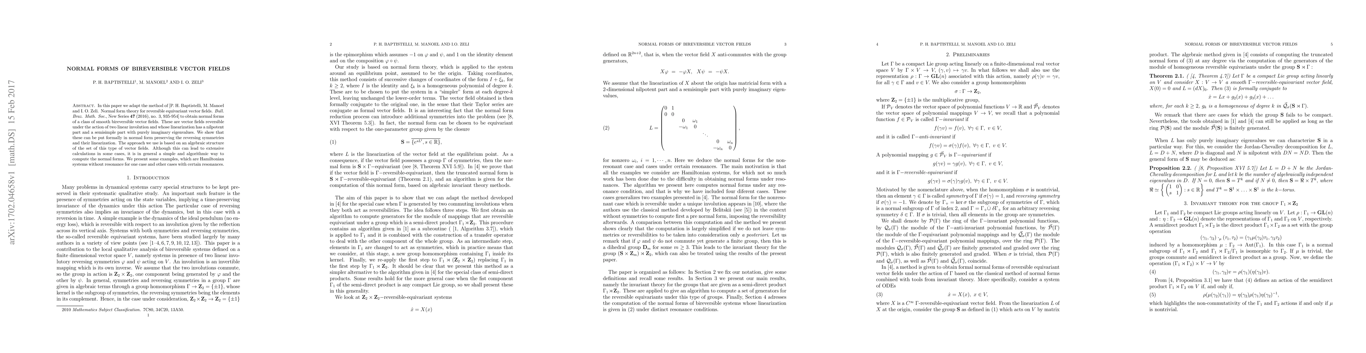 This paper develops normal forms for bireversible vector fields, which are reversible under two linear involutions, using an adapted method from previous work. It presents an algorithmic approach to compute these forms while preserving the symmetries and linearizations, illustrated with examples including Hamiltonian systems.