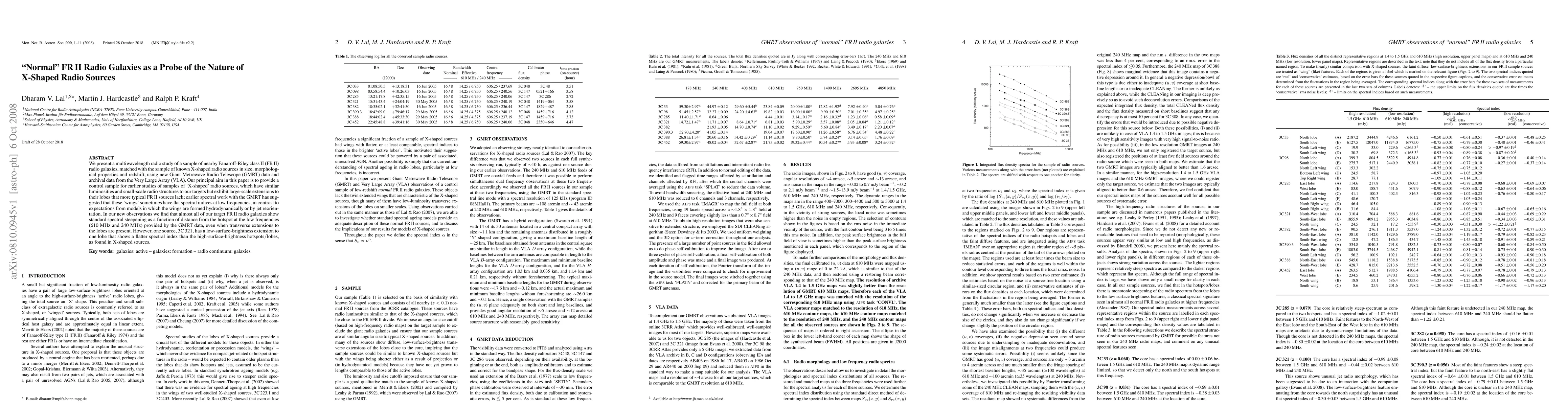 We present a multiwavelength radio study of a sample of nearby Fanaroff-Riley class II (FRII) radio galaxies, matched with the sample of known X-shaped radio sources in size, morphological properties and redshift, using new Giant Metrewave Radio Telescope (GMRT) data and archival data from the Very Large Array (VLA). Our principal aim in this paper is to provide a control sample for earlier studies of samples of `X-shaped' radio sources, which have similar luminosities and small-scale radio structures to our targets but exhibit large-scale extensions to their lobes that more typical FRII sources lack; earlier spectral work with the GMRT has suggested that these `wings' sometimes have flat spectral indices at low frequencies, in contrast to expectations from models in which the wings are formed hydrodynamically or by jet reorientation. In our new observations we find that almost all of our target FRII radio galaxies show standard spectral steepening as a function of distance from the hotspot at the low frequencies (610 MHz and 240 MHz) provided by the GMRT data, even when transverse extensions to the lobes are present. However, one source, 3C321, has a low-surface-brightness extension to one lobe that shows a flatter spectral index than the high-surface-brightness hotspots/lobes, as found in X-shaped sources.