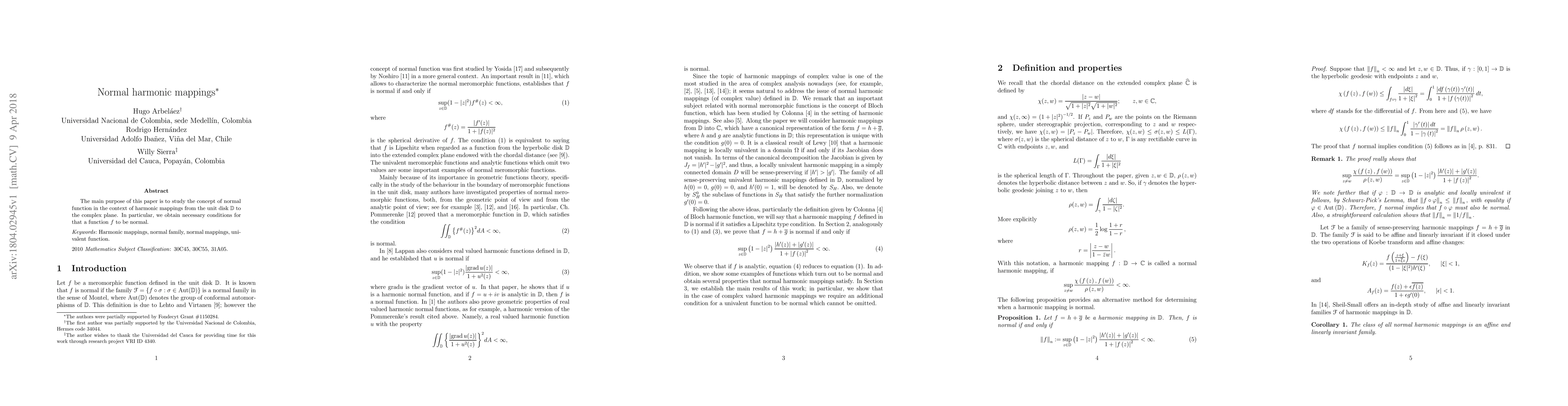 The main purpose of this paper is to study the concept of normal function in the context of harmonic mappings from the unit disk $\mathbb{D}$ to the complex plane. In particular, we obtain necessary conditions for that a function $f$ to be normal.