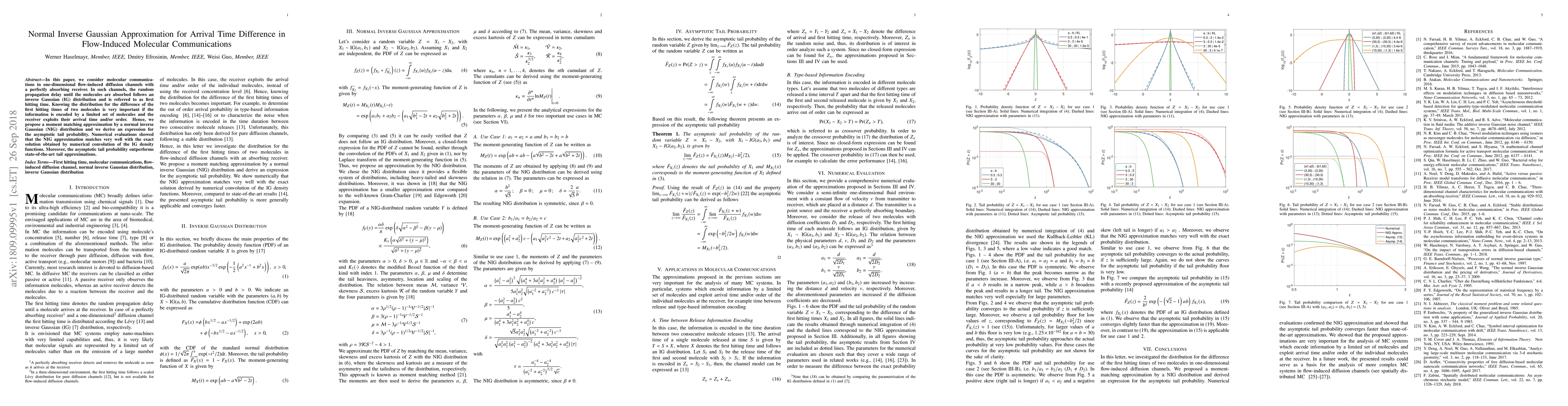 In this paper, we consider molecular communications in one-dimensional flow-induced diffusion channels with a perfectly absorbing receiver. In such channels, the random propagation delay until the molecules are absorbed follows an inverse Gaussian (IG) distribution and is referred to as first hitting time. Knowing the distribution for the difference of the first hitting times of two molecules is very important if the information is encoded by a limited set of molecules and the receiver exploits their arrival time and/or order. Hence, we propose a moment matching approximation by a normal inverse Gaussian (NIG) distribution and we derive an expression for the asymptotic tail probability. Numerical evaluations showed that the NIG approximation matches very well with the exact solution obtained by numerical convolution of the IG density functions. Moreover, the asymptotic tail probability outperforms state-of-the-art tail approximations.
