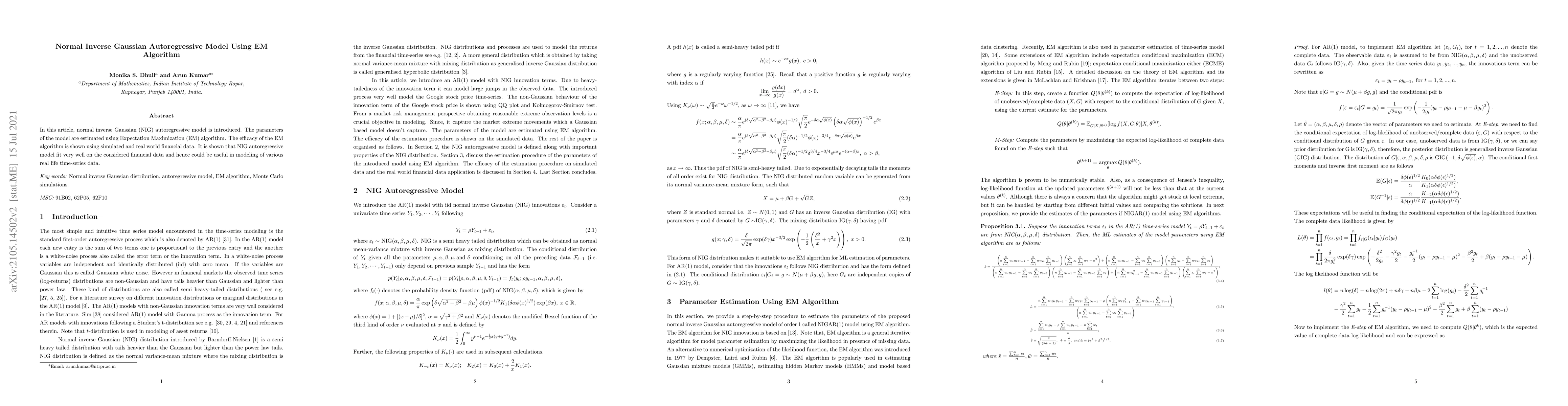 This paper introduces a Normal Inverse Gaussian (NIG) autoregressive model and estimates its parameters using the Expectation Maximization (EM) algorithm. The EM algorithm's effectiveness is demonstrated through simulations and real financial data, showing the NIG model's suitability for time-series data modeling.