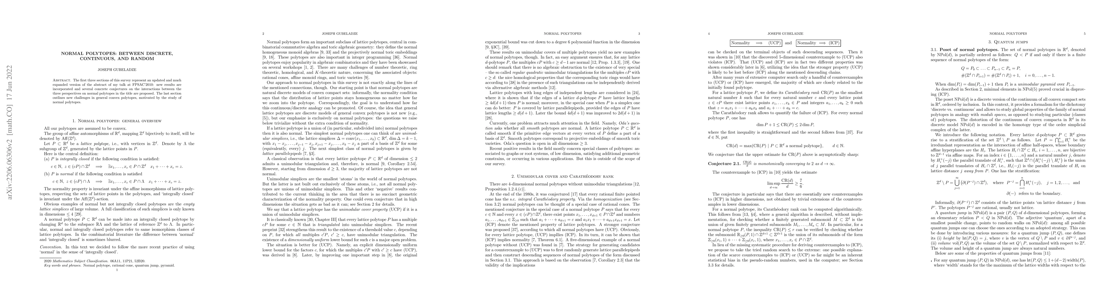 This paper surveys recent advancements in the study of normal polytopes, exploring their connections between discrete, continuous, and random perspectives. It proposes new conjectures and outlines emerging challenges in general convex polytopes inspired by the research on normal polytopes.
