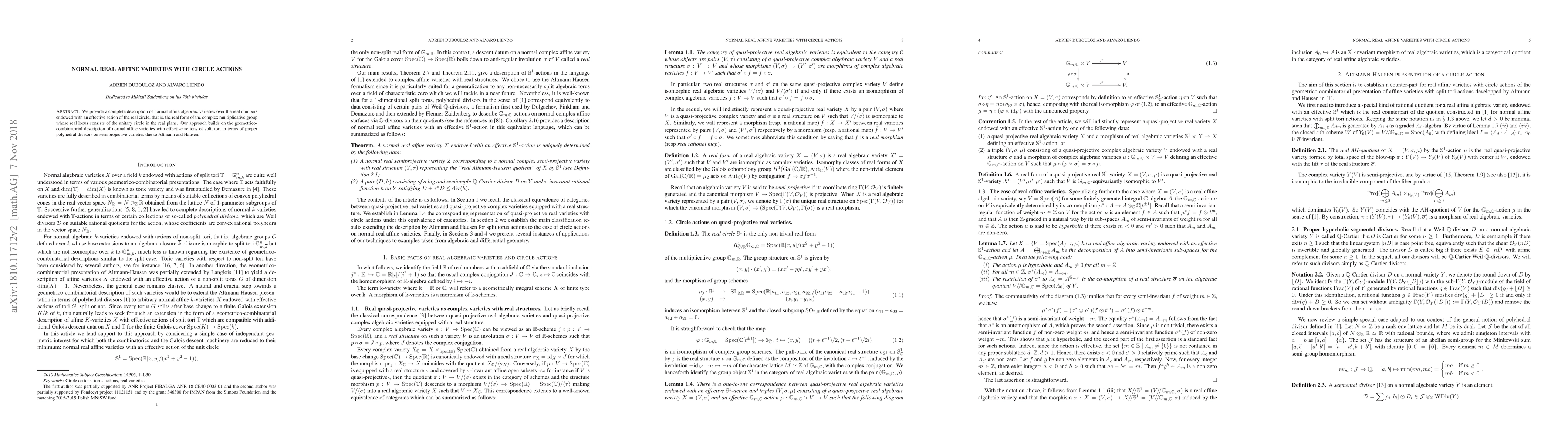 We provide a complete description of normal affine algebraic varieties over the real numbers endowed with an effective action of the real circle, that is, the real form of the complex multiplicative group whose real locus consists of the unitary circle in the real plane. Our approach builds on the geometrico-combinatorial description of normal affine varieties with effective actions of split tori in terms of proper polyhedral divisors on semiprojective varieties due to Altmann and Hausen