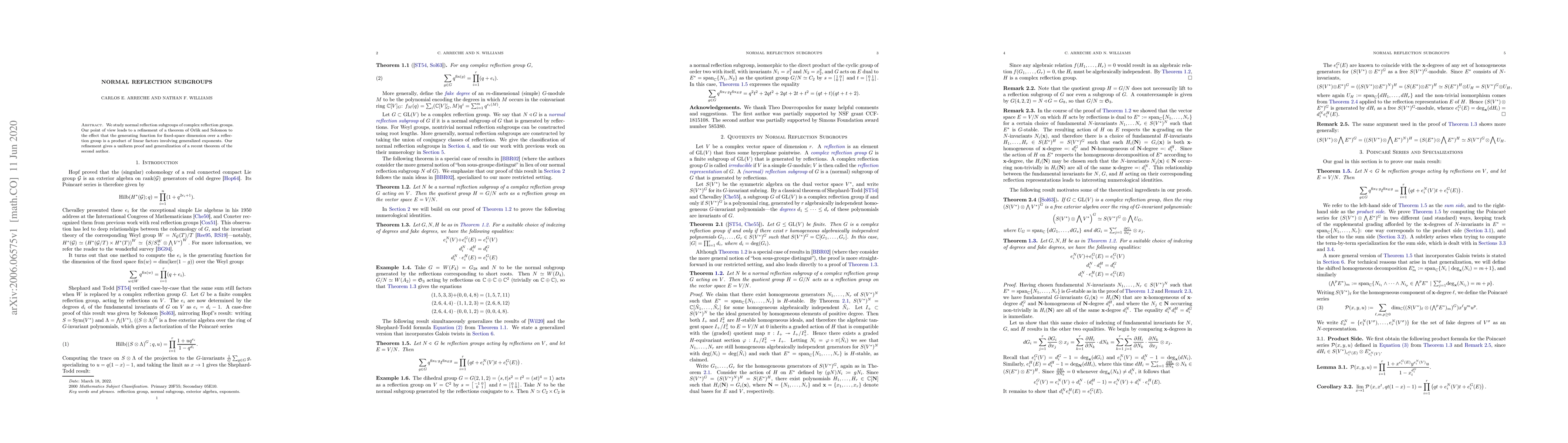 We study normal reflection subgroups of complex reflection groups. Our point of view leads to a refinement of a theorem of Orlik and Solomon to the effect that the generating function for fixed-space dimension over a reflection group is a product of linear factors involving generalized exponents. Our refinement gives a uniform proof and generalization of a recent theorem of the second author.