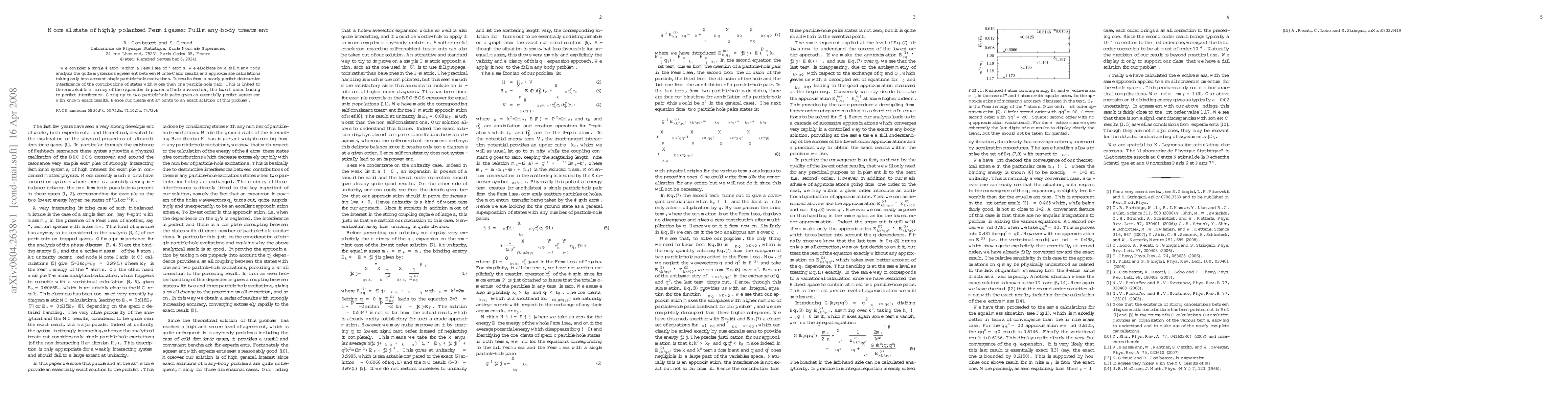 The paper presents a comprehensive many-body analysis of a single down-spin atom in a Fermi sea of up-spin atoms, explaining the surprising agreement between Monte-Carlo results and simpler calculations. This agreement stems from nearly perfect destructive interference of multi-particle-hole pair states, attributed to the effectiveness of an expansion in powers of hole wavevectors. Including up to two particle-hole pairs provides near-perfect agreement with known exact results, effectively solving the problem.