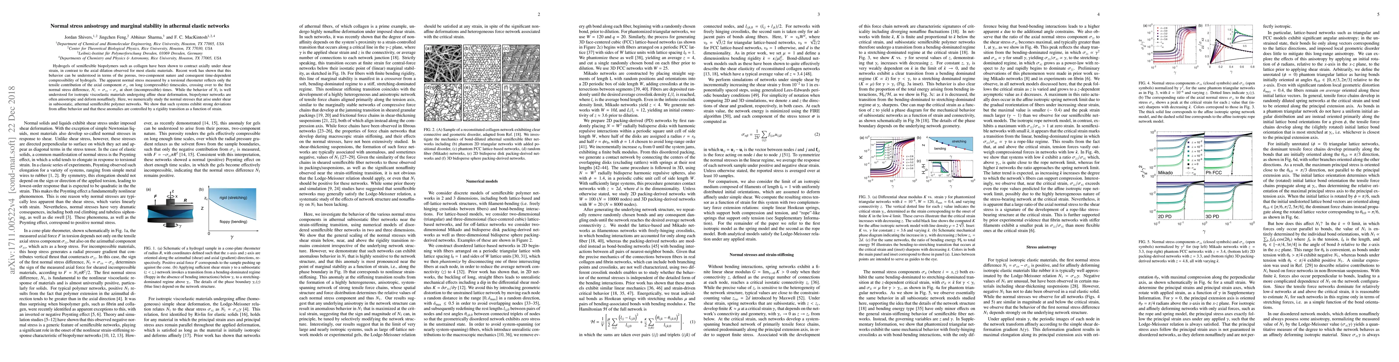 Hydrogels of semiflexible biopolymers such as collagen have been shown to contract axially under shear strain, in contrast to the axial dilation observed for most elastic materials. Recent work has shown that this behavior can be understood in terms of the porous, two-component nature and consequent time-dependent compressibility of hydrogels. The apparent normal stress measured by a torsional rheometer reflects only the tensile contribution of the axial component $\sigma_{zz}$ on long (compressible) timescales, crossing over to the first normal stress difference, $N_1 = \sigma_{xx}-\sigma_{zz}$ at short (incompressible) times. While the behavior of $N_1$ is well understood for isotropic viscoelastic materials undergoing affine shear deformation, biopolymer networks are often anisotropic and deform nonaffinely. Here, we numerically study the normal stresses that arise under shear in subisostatic, athermal semiflexible polymer networks. We show that such systems exhibit strong deviations from affine behavior and that these anomalies are controlled by a rigidity transition as a function of strain.