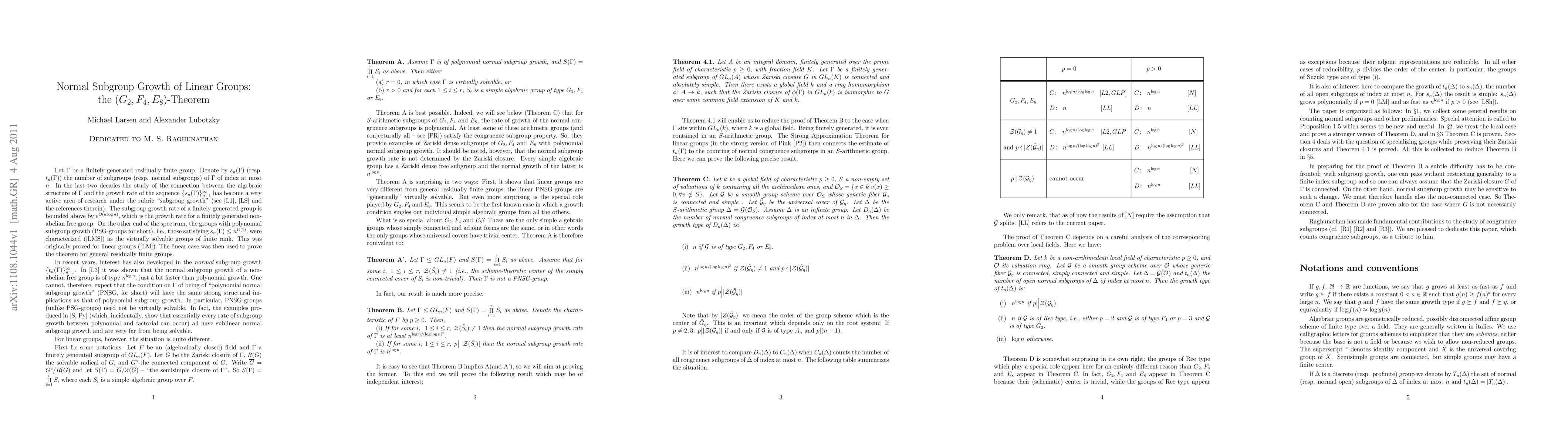 This research paper shows that for linear groups G, normal subgroup growth can grow polynomially only if the semisimple part of G has components of type G2, F4, or E8, under specific conditions.