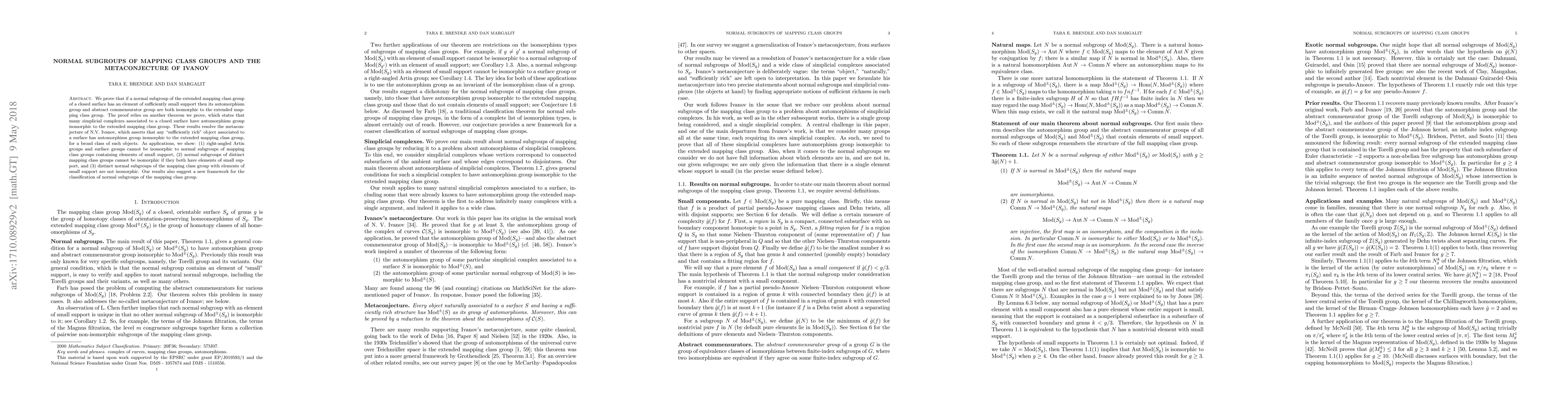 This paper proves that normal subgroups of the extended mapping class group with elements of small support have automorphism and commensurator groups isomorphic to the extended mapping class group, resolving Ivanov's metaconjecture. It also demonstrates that certain groups cannot be normal subgroups with small support elements and suggests a new classification framework for these subgroups.