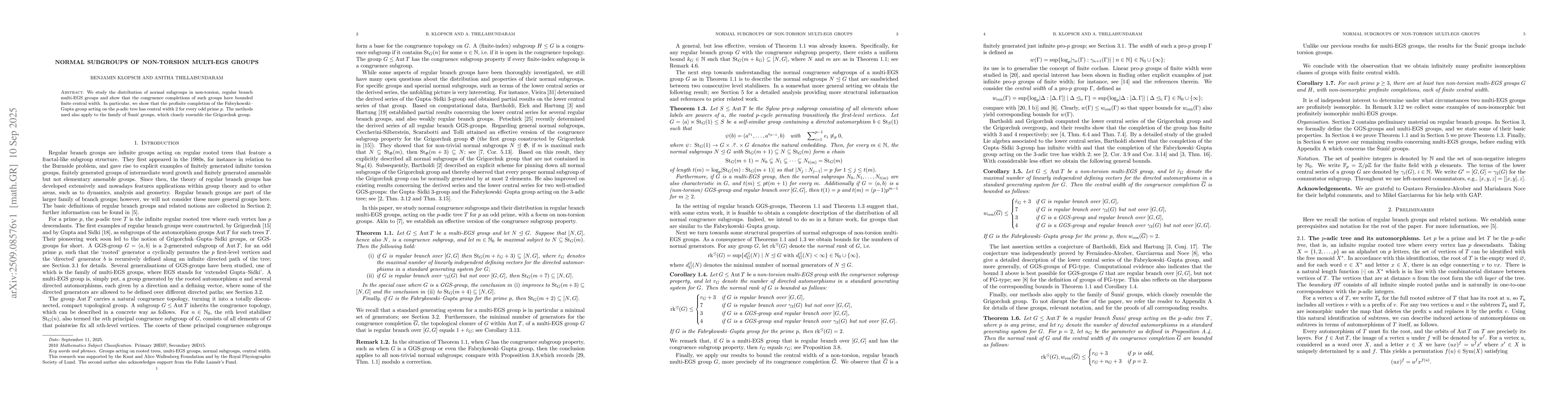 We study the distribution of normal subgroups in non-torsion, regular branch multi-EGS groups and show that the congruence completions of such groups have bounded finite central width. In particular, we show that the profinite completion of the Fabrykowski--Gupta group acting on the $p$-adic tree has central width 2 for every odd prime $p$. The methods used also apply to the family of Sunic groups, which closely resemble the Grigorchuk group.