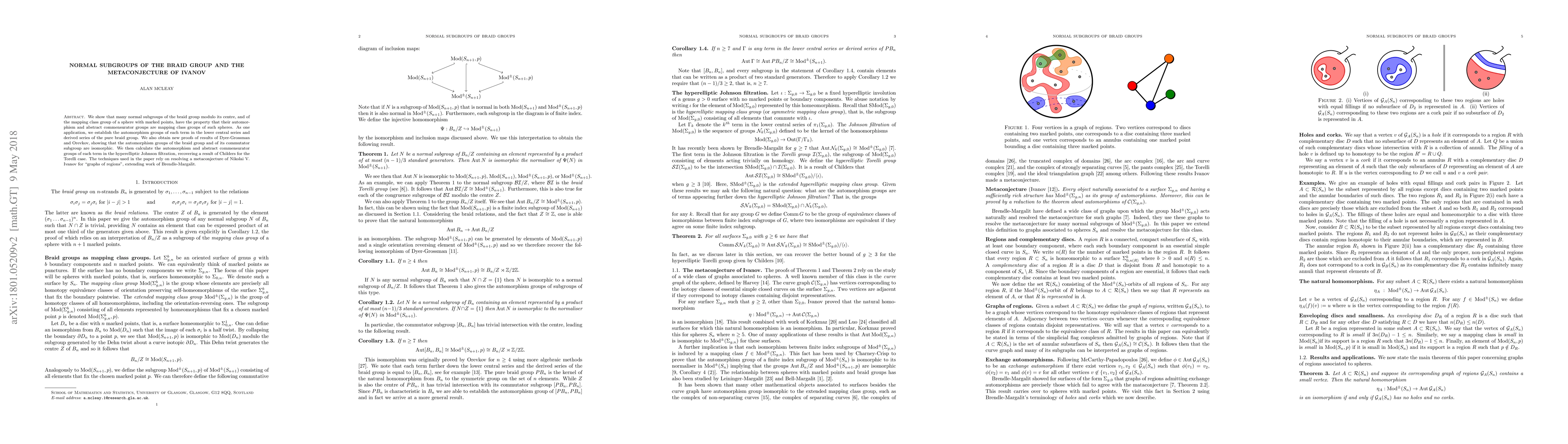 This paper demonstrates that many normal subgroups of the braid group and mapping class groups exhibit properties where their automorphism and commensurator groups are mapping class groups of spheres. The study resolves Ivanov's metaconjecture for "graphs of regions," providing new proofs for Dyer-Grossman and Orevkov's results on braid group automorphisms.