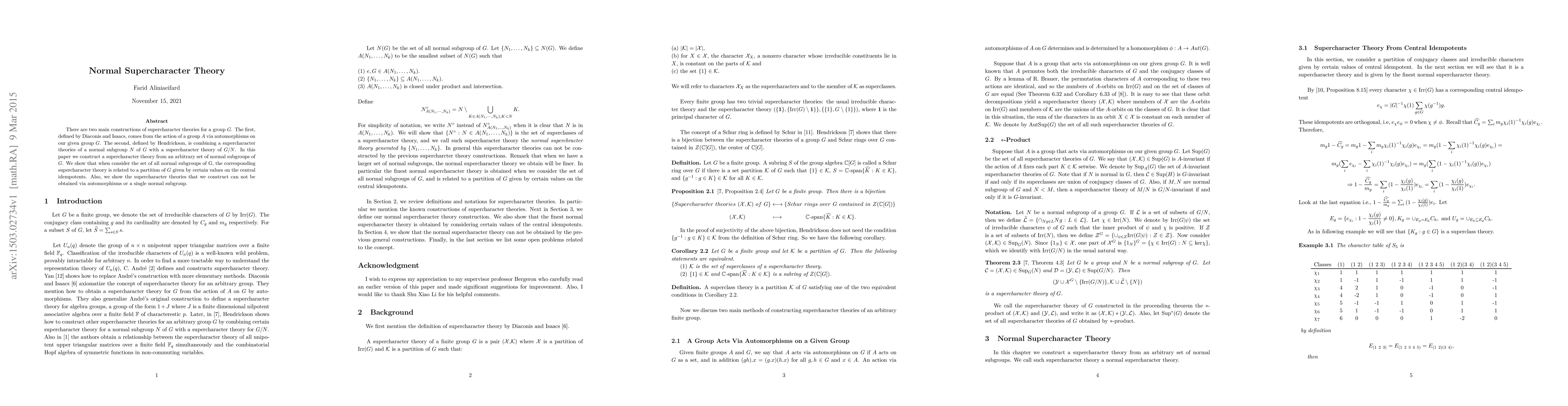 This paper constructs supercharacter theories from arbitrary sets of normal subgroups of a group $G$, demonstrating that these theories relate to a partition of $G$ via central idempotents, and proving that they cannot be derived from automorphisms or a single normal subgroup.