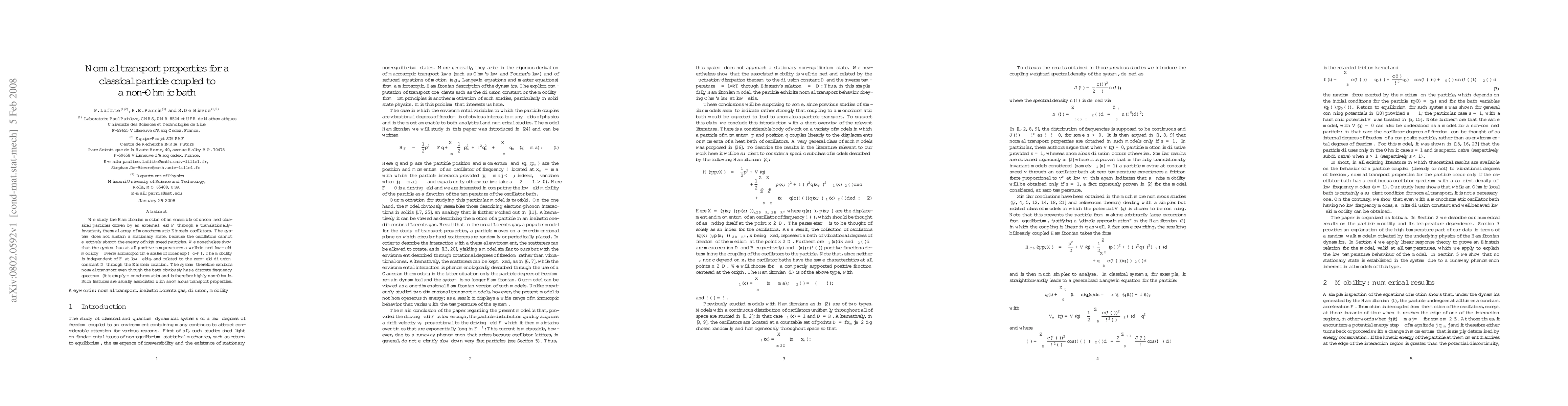 This research demonstrates that a classical particle system, even when coupled to a non-Ohmic bath of monochromatic Einstein oscillators, can exhibit normal transport properties. The system, driven by an external field, shows a well-defined low-field mobility independent of the field strength, linked to the zero-field diffusion constant via the Einstein relation. This challenges the usual association between non-Ohmic baths and anomalous transport.