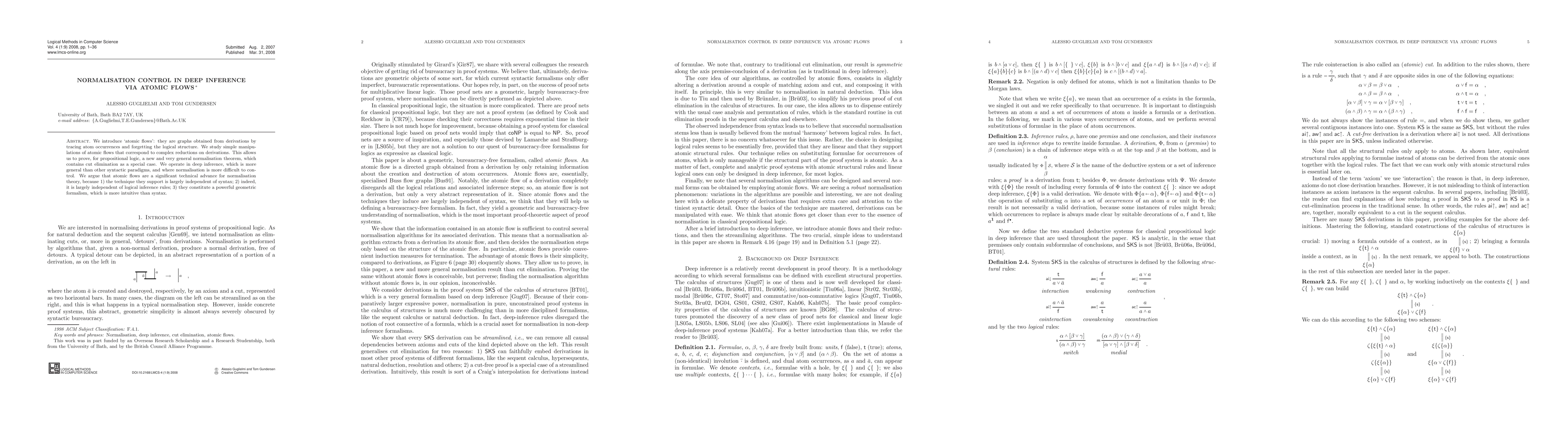 Researchers introduce a new technique called atomic flows to improve control over normalisation in deep inference, leading to a generalised normalisation theorem that encompasses cut elimination as a special case.